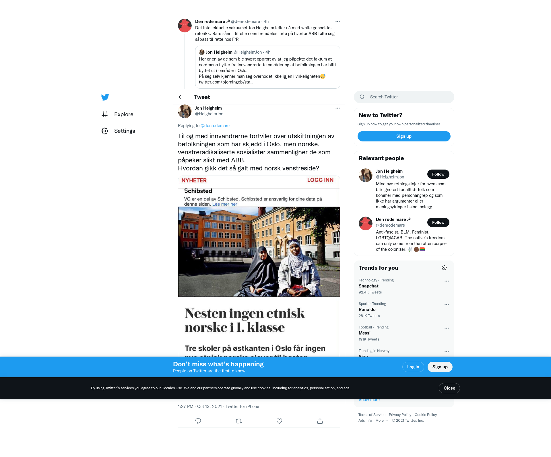 @denrodemare Til og med innvandrerne fortviler over utskiftningen av befolkningen som har skjedd i Oslo, men norske, venstreradikaliserte sosialister sammenligner de som påpeker slikt med ABB.