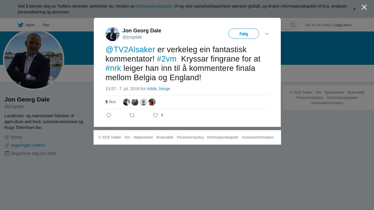 @TV2Alsaker er verkeleg ein fantastisk kommentator! #2vm Kryssar fingrane for at #nrk leiger han inn til å kommentere finala mellom Belgia og England!