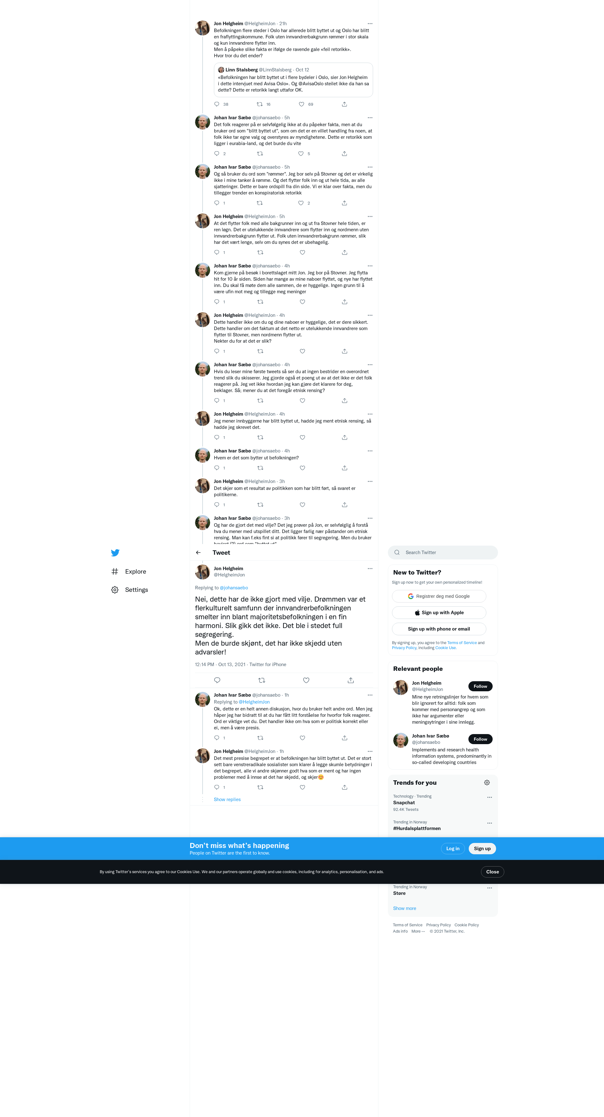 @johansaebo Nei, dette har de ikke gjort med vilje. Drømmen var et flerkulturelt samfunn der innvandrerbefolkningen smelter inn blant majoritetsbefolkningen i en fin harmoni. Slik gikk det ikke. Det ble i stedet full segregering.
