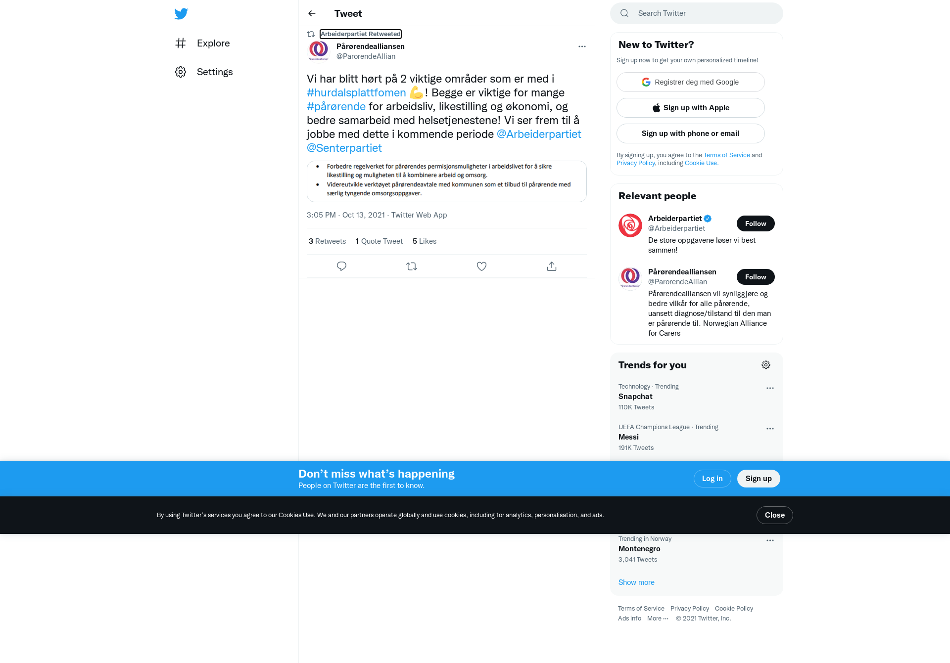 RT @ParorendeAllian: Vi har blitt hørt på 2 viktige områder som er med i #hurdalsplattfomen 💪! Begge er viktige for mange #pårørende for arbeidsliv, likestilling og økonomi, og bedre samarbeid med helsetjenestene! Vi ser frem til å jobbe med dette i kommende periode @Arbeiderpartiet @Senterpartiet https://t.co/7T8nybbMRp