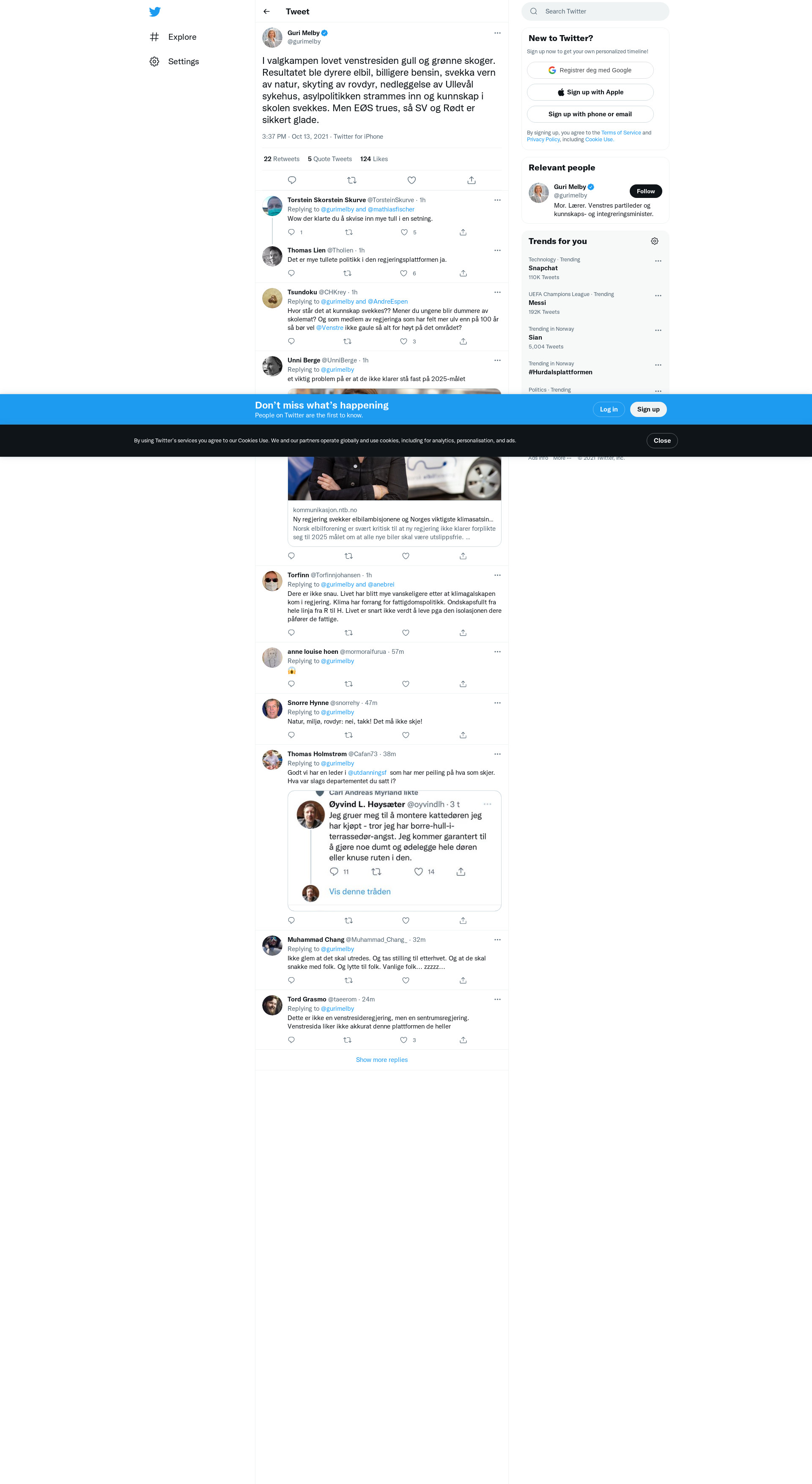 I valgkampen lovet venstresiden gull og grønne skoger. Resultatet ble dyrere elbil, billigere bensin, svekka vern av natur, skyting av rovdyr, nedleggelse av Ullevål sykehus, asylpolitikken strammes inn og kunnskap i skolen svekkes. Men EØS trues, så SV og Rødt er sikkert glade.
