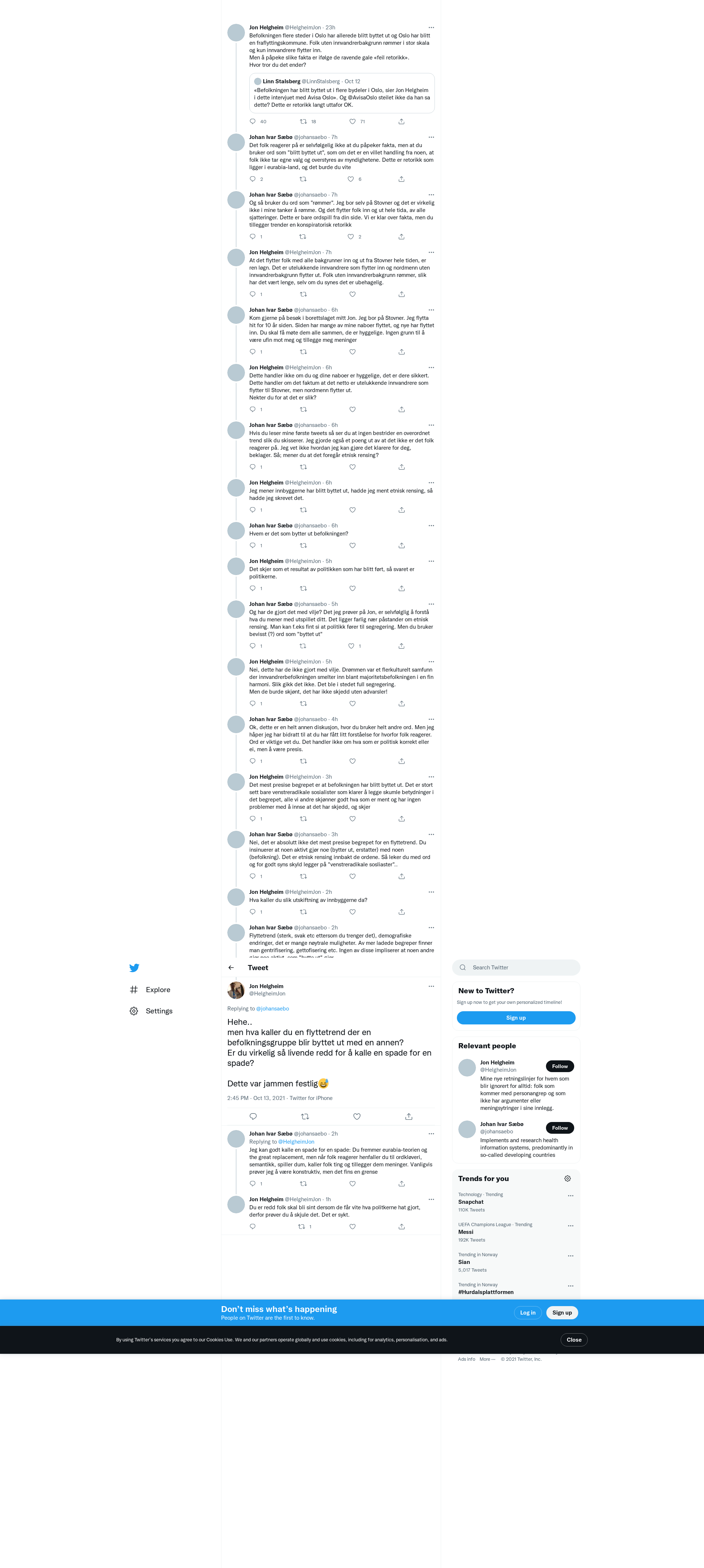 @johansaebo Hehe.. men hva kaller du en flyttetrend der en befolkningsgruppe blir byttet ut med en annen? Er du virkelig så livende redd for å kalle en spade for en spade? Dette var jammen festlig😅