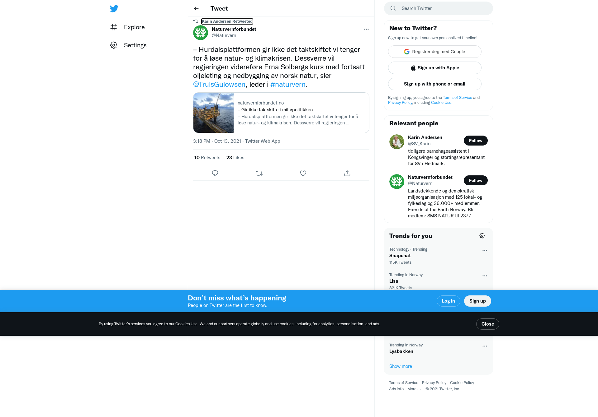 RT @Naturvern: – Hurdalsplattformen gir ikke det taktskiftet vi tenger for å løse natur- og klimakrisen. Dessverre vil regjeringen videreføre Erna Solbergs kurs med fortsatt oljeleting og nedbygging av norsk natur, sier @TrulsGulowsen, leder i #naturvern.