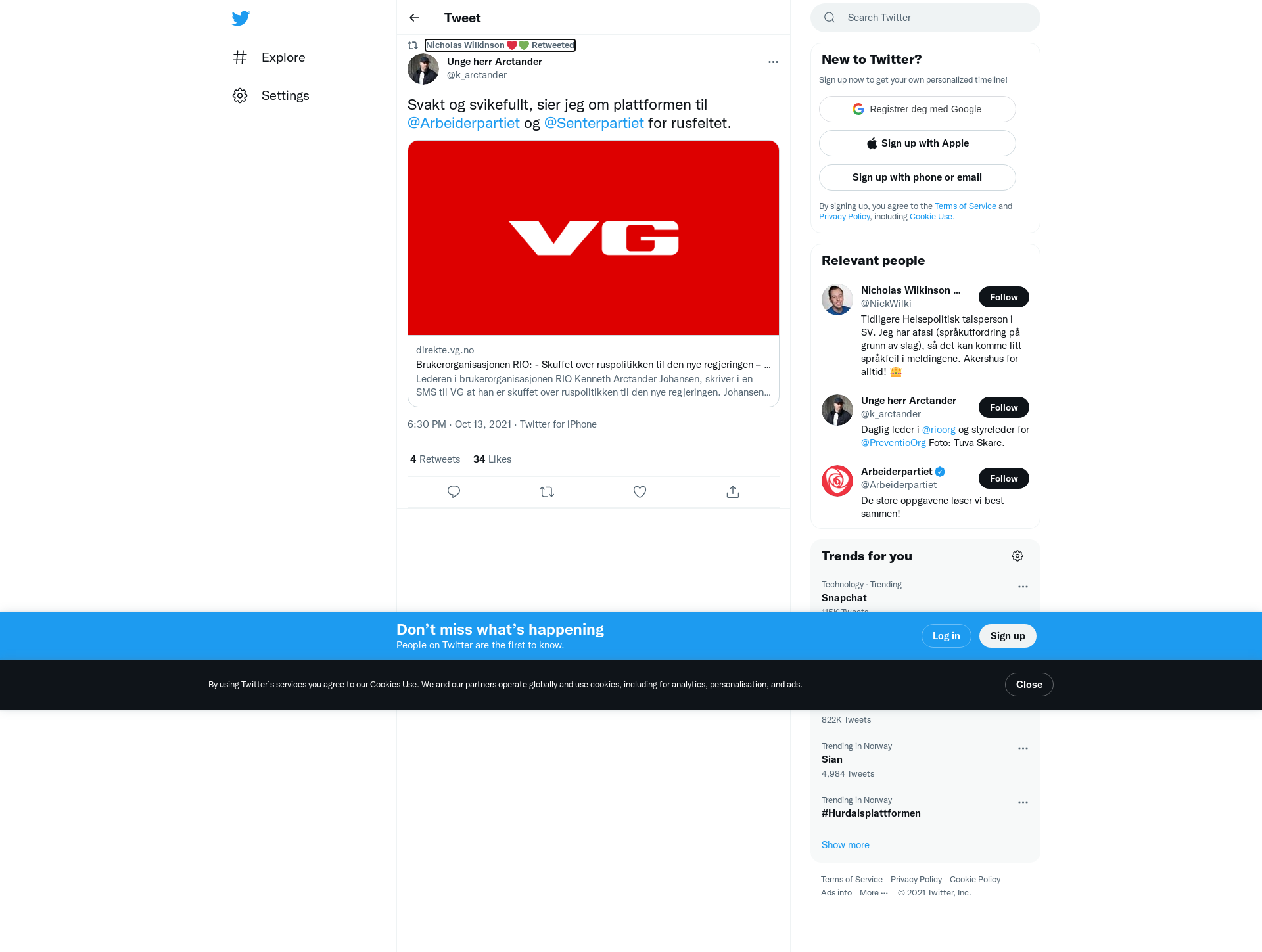 RT @k_arctander: Svakt og svikefullt, sier jeg om plattformen til @Arbeiderpartiet og @Senterpartiet for rusfeltet. https://t.co/kMirbfn4…