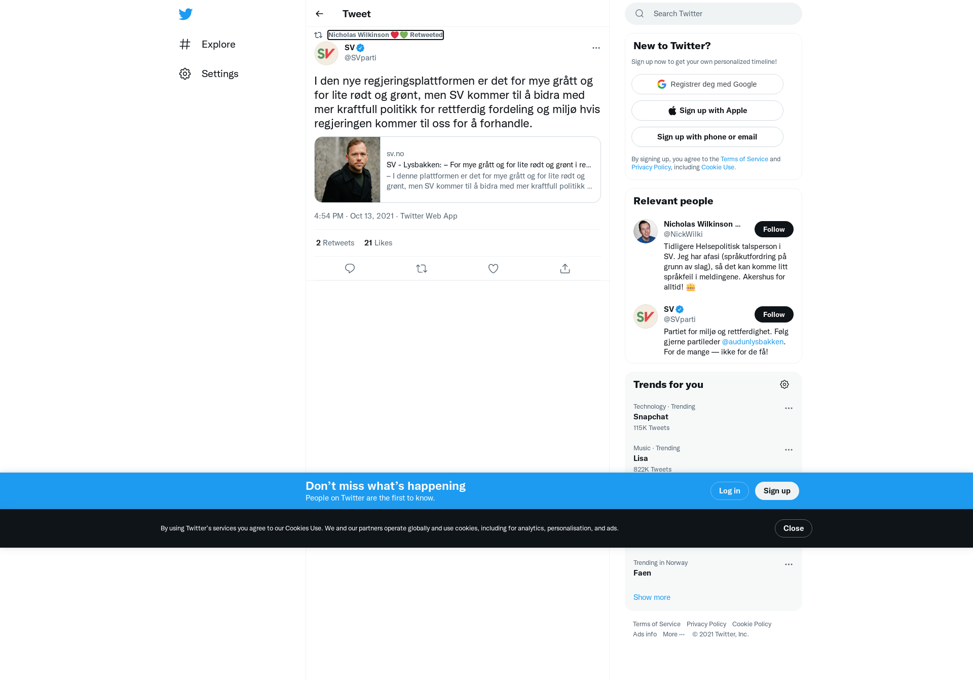 RT @SVparti: I den nye regjeringsplattformen er det for mye grått og for lite rødt og grønt, men SV kommer til å bidra med mer kraftfull politikk for rettferdig fordeling og miljø hvis regjeringen kommer til oss for å forhandle. https://t.co/77lJ5XtMXU