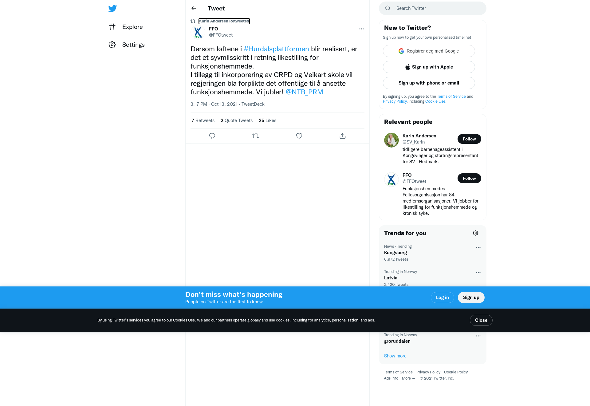 RT @FFOtweet: Dersom løftene i #Hurdalsplattformen blir realisert, er det et syvmilsskritt i retning likestilling for funksjonshemmede. I…