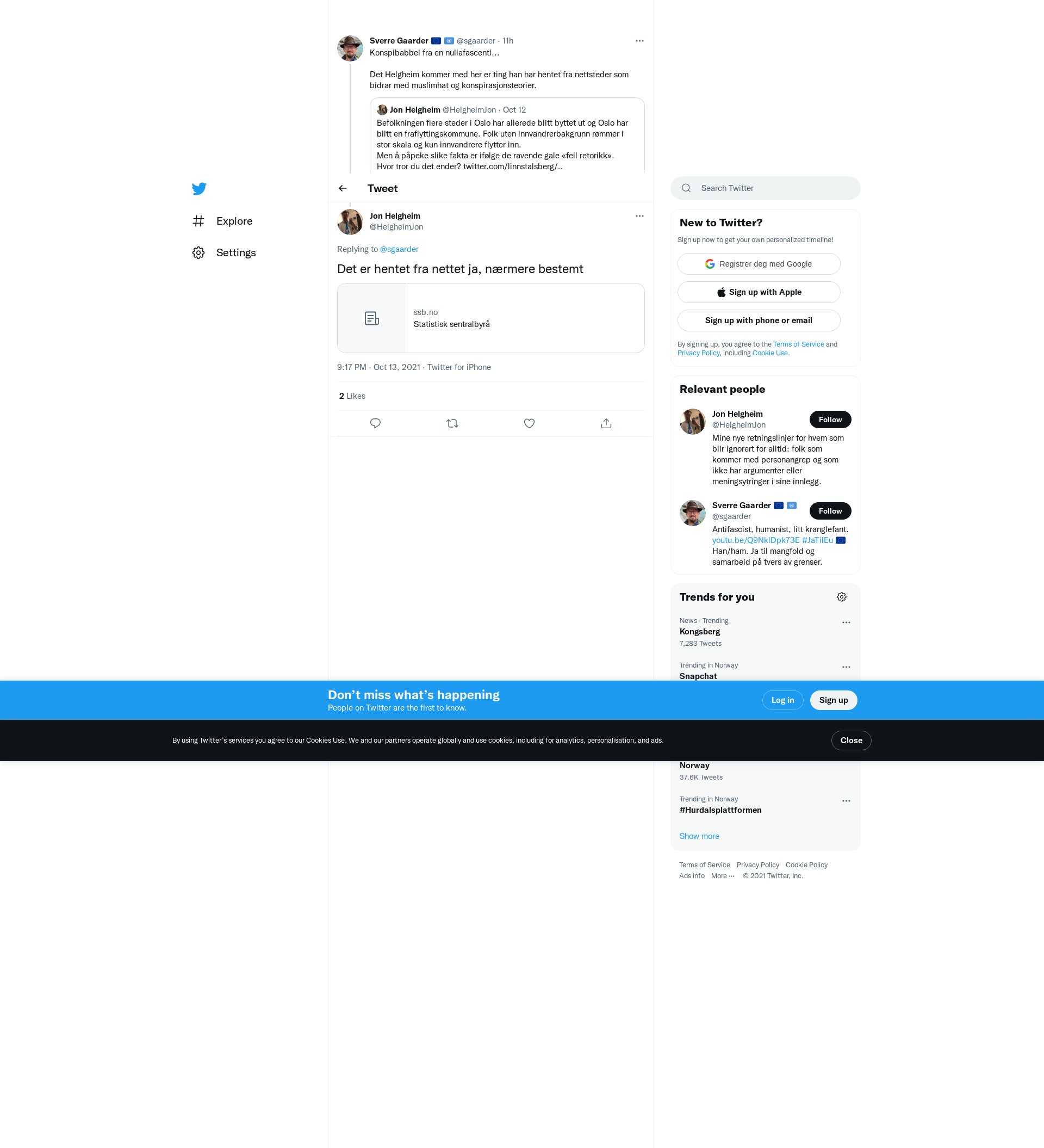 I veke 39 i 2021 var eksportprisen for fersk laks 53,54 kr/kg, ein svak auke på 1,2 prosent samanlikna med veka før. … Etterforskningen ble avsluttet for 297 500 lovbrudd i 2020. Dette medførte 145 800 siktelser overfor 69 900 gjerningspersoner. Et år med annerledes samfunnskontakt har hatt betydning, men flere av utviklingstrekkene fra de foregående årene er samtidig blitt tydeligere. … 2021-versjonen av kartdatasettet Tettsteder er nå ferdig beregnet og tilgjengelig for innsyn i kart.ssb.no. Datasettet