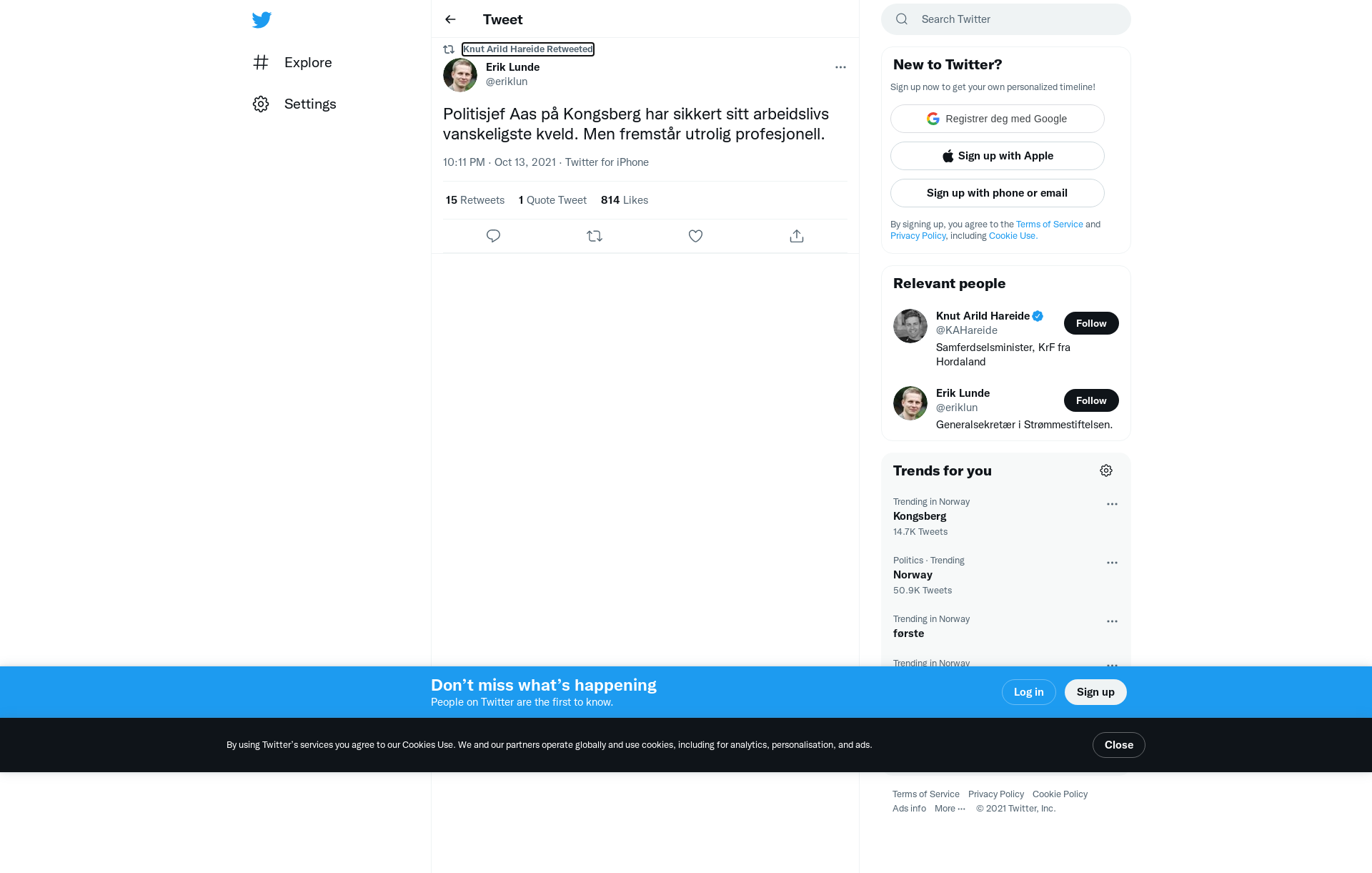 RT @eriklun: Politisjef Aas på Kongsberg har sikkert sitt arbeidslivs vanskeligste kveld. Men fremstår utrolig profesjonell.