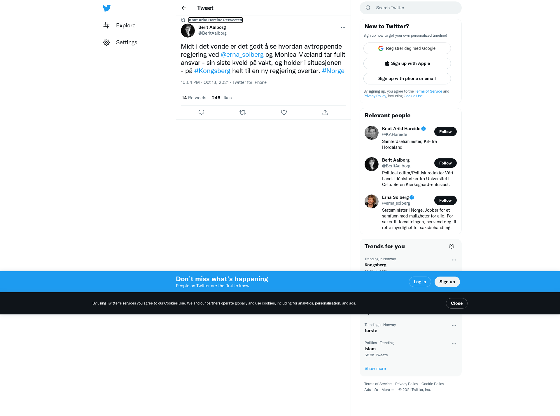 RT @BeritAalborg: Midt i det vonde er det godt å se hvordan avtroppende regjering ved @erna_solberg og Monica Mæland tar fullt ansvar - sin siste kveld på vakt, og holder i situasjonen  - på #Kongsberg helt til en ny regjering overtar. #Norge