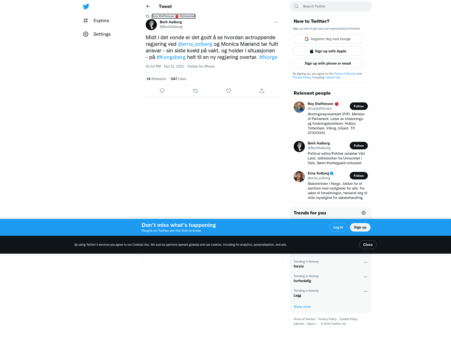 RT @BeritAalborg: Midt i det vonde er det godt å se hvordan avtroppende regjering ved @erna_solberg og Monica Mæland tar fullt ansvar - sin siste kveld på vakt, og holder i situasjonen - på #Kongsberg helt til en ny regjering overtar. #Norge