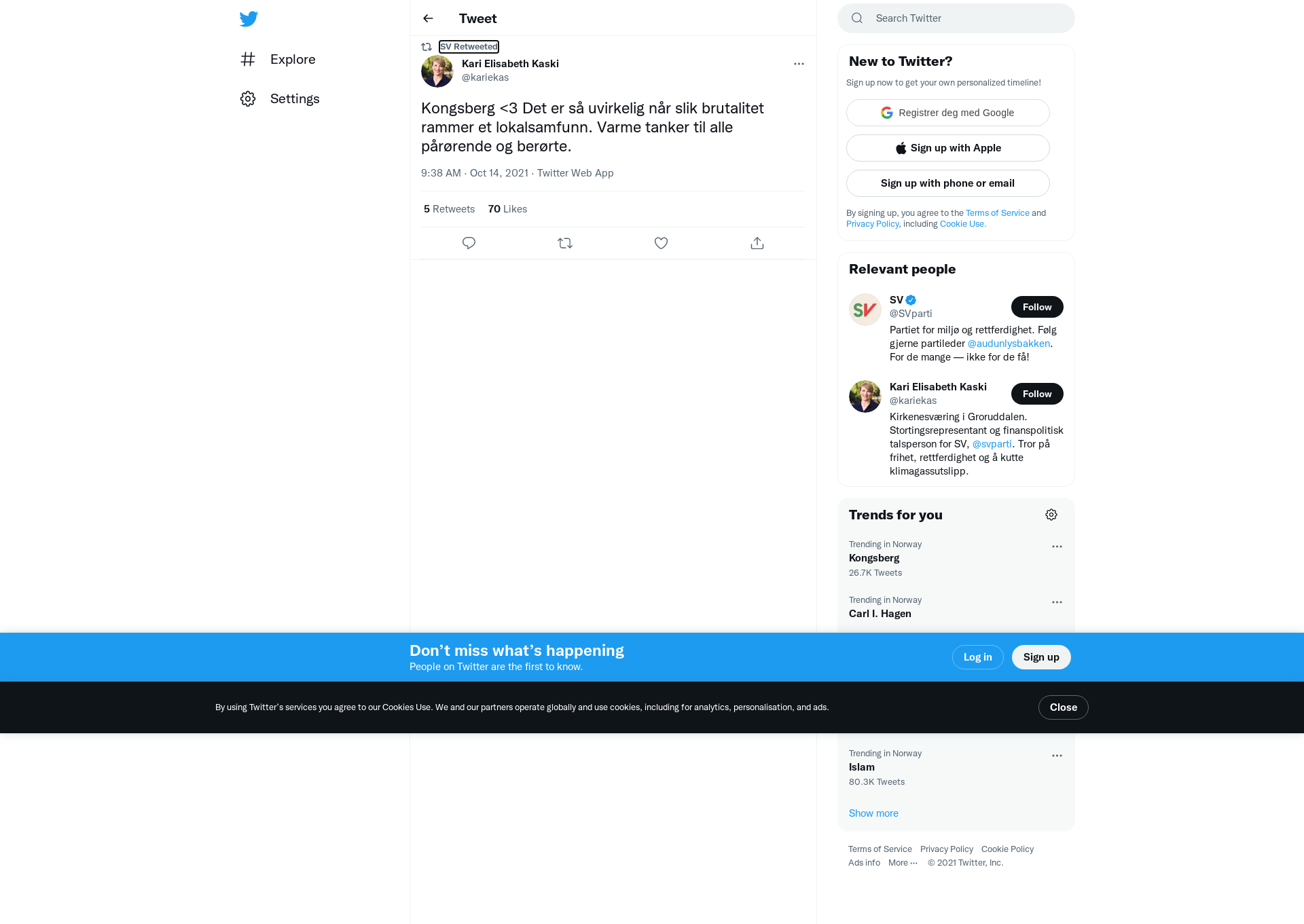RT @kariekas: Kongsberg <3 Det er så uvirkelig når slik brutalitet rammer et lokalsamfunn. Varme tanker til alle pårørende og berørte.
