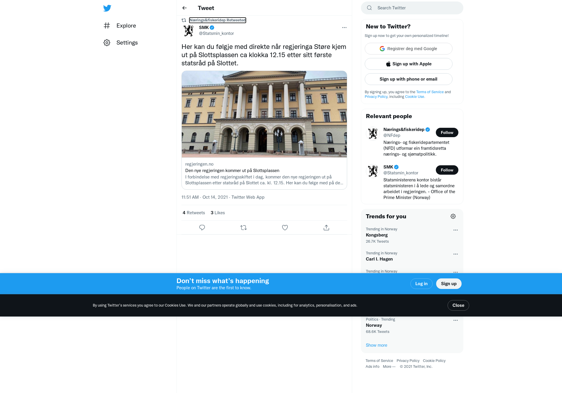RT @Statsmin_kontor: Her kan du følgje med direkte når regjeringa Støre kjem ut på Slottsplassen ca klokka 12.15 etter sitt første statsråd på Slottet. https://t.co/AmiwgH2659