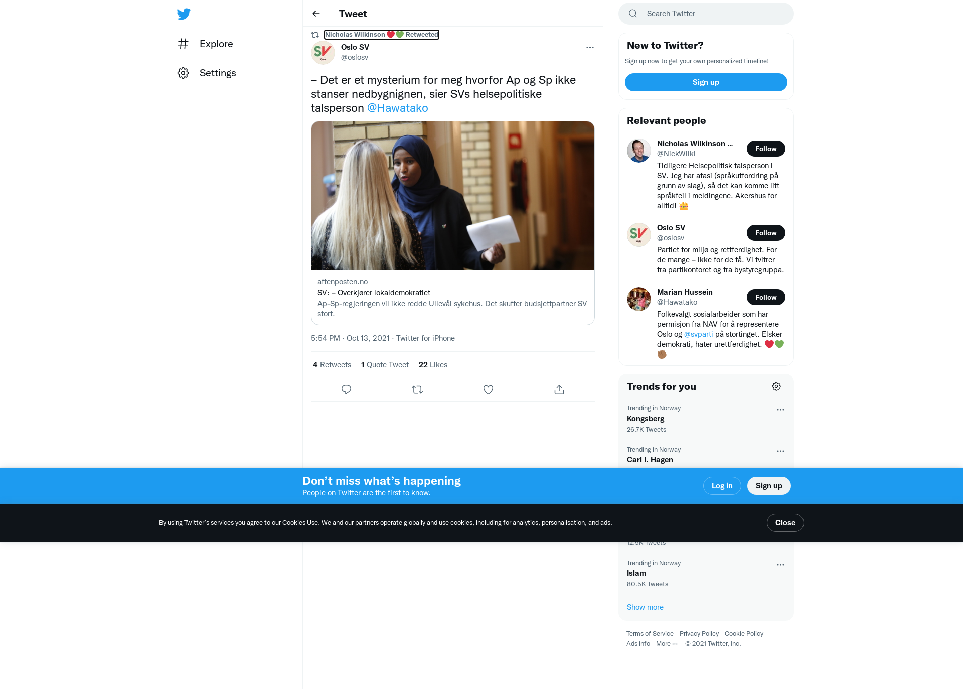 RT @oslosv: – Det er et mysterium for meg hvorfor Ap og Sp ikke stanser nedbygnignen, sier SVs helsepolitiske talsperson @Hawatako https://t.co/5i9VIcPyOW