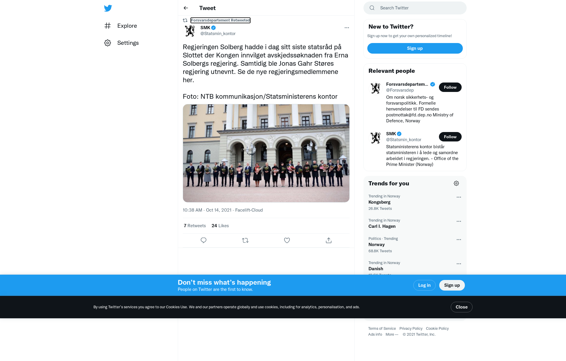 RT @Statsmin_kontor: Regjeringen Solberg hadde i dag sitt siste statsråd på Slottet der Kongen innvilget avskjedssøknaden fra Erna Solbergs regjering. Samtidig ble Jonas Gahr Støres regjering utnevnt. Se de nye regjeringsmedlemmene her.