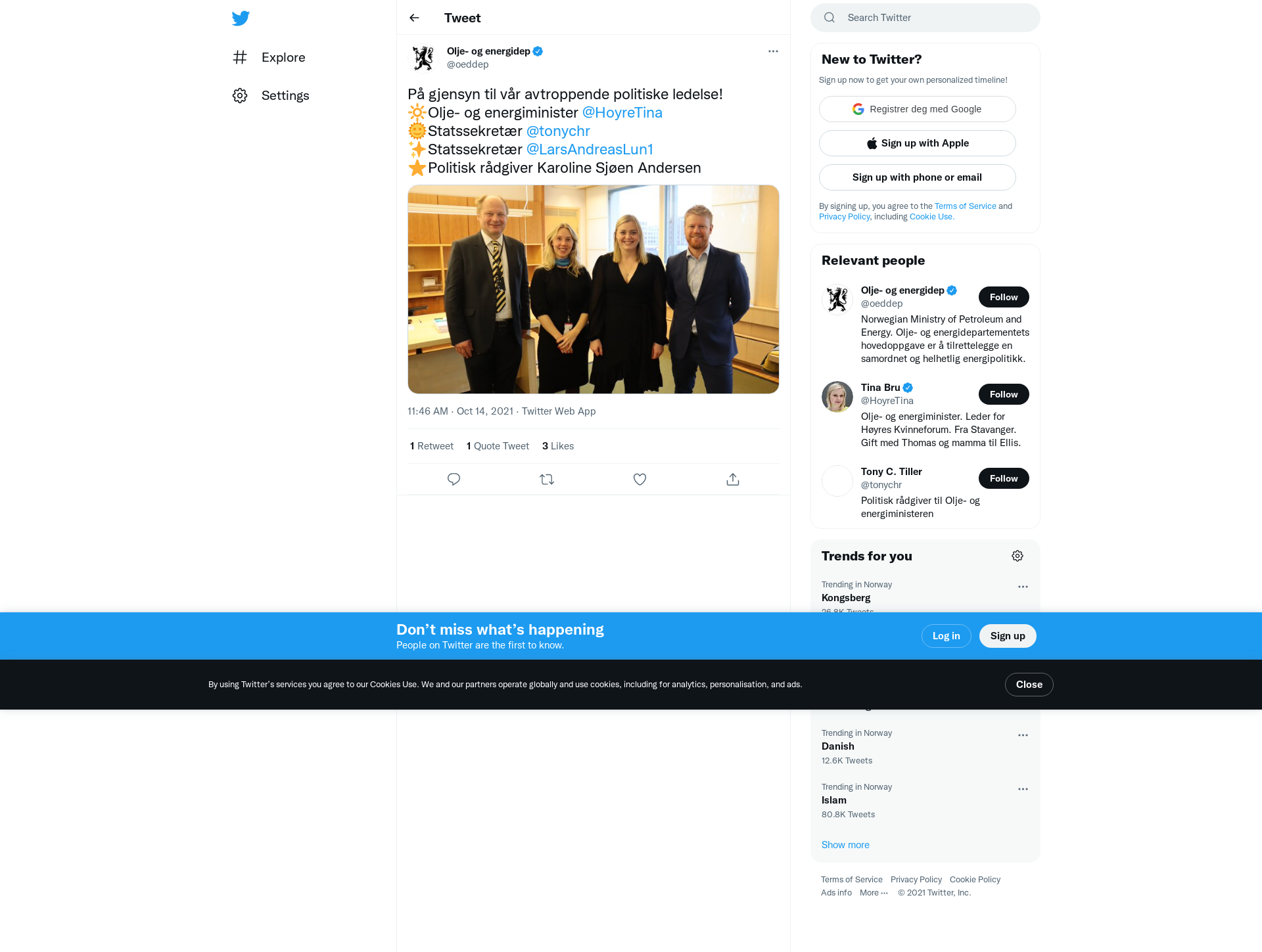 På gjensyn til vår avtroppende politiske ledelse! 🔆Olje- og energiminister @HoyreTina 🌞Statssekretær @tonychr ✨Statssekretær @LarsAndreasLun1 ⭐️Politisk rådgiver Karoline Sjøen Andersen https://t.co/dPhu9AEv9B