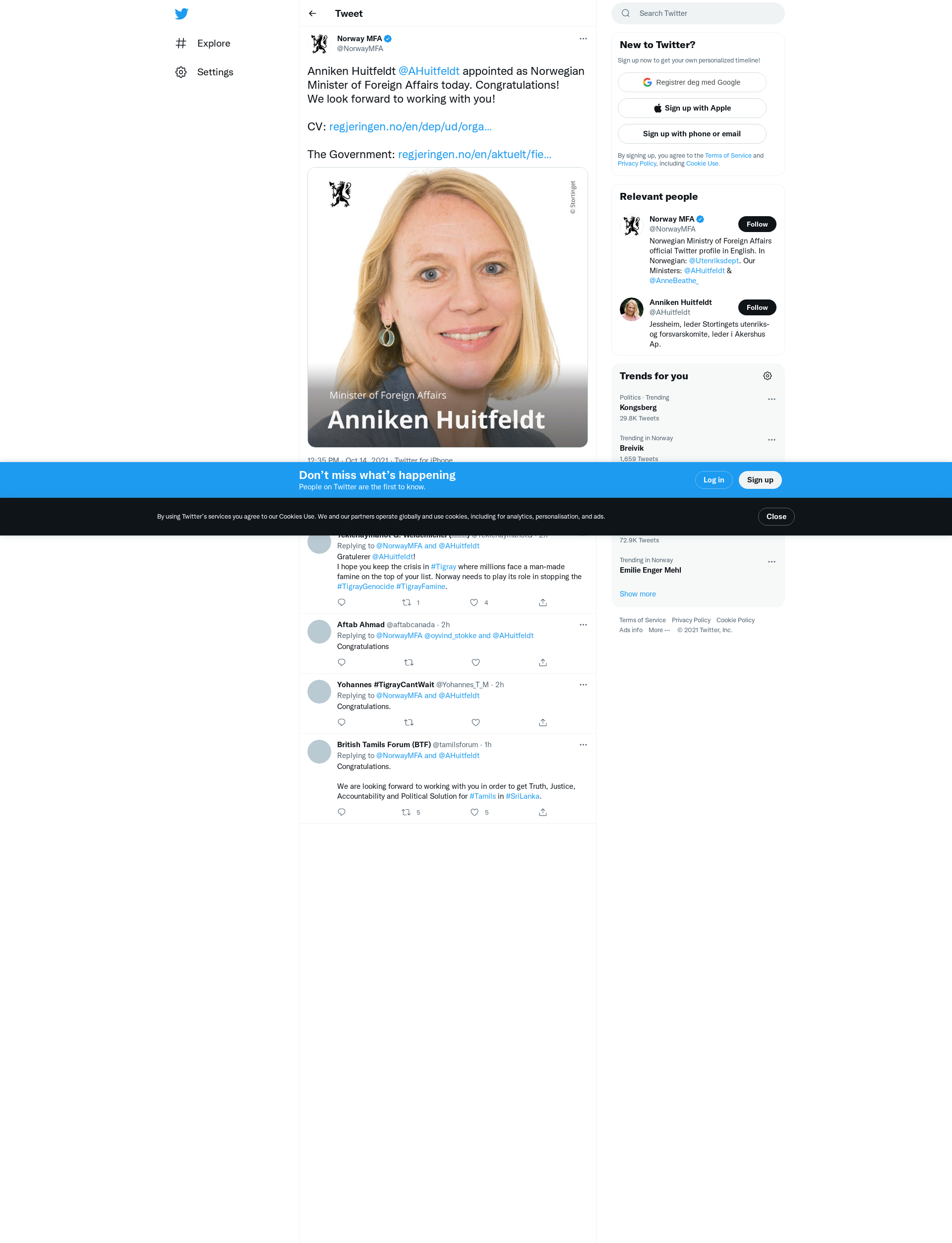 Anniken Huitfeldt @AHuitfeldt appointed as Norwegian Minister of Foreign Affairs today. Congratulations!