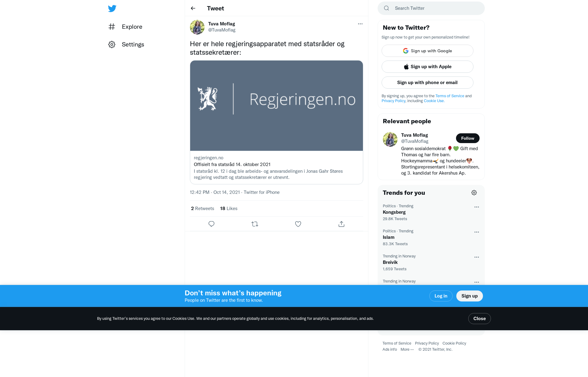 Her er hele regjeringsapparatet med statsråder og statssekretærer: https://t.co/wpEuMWGF3k