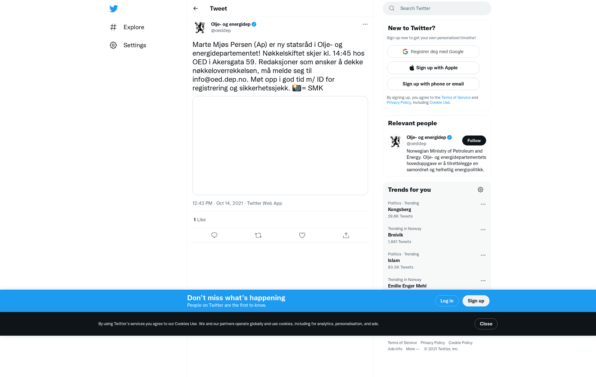 Marte Mjøs Persen (Ap) er ny statsråd i Olje- og energidepartementet! Nøkkelskiftet skjer kl. 14:45 hos OED i Akersgata 59. Redaksjoner som ønsker å dekke nøkkeloverrekkelsen, må melde seg til info@oed.dep.no. Møt opp i god tid m/ ID for registrering og sikkerhetssjekk. 📸= SMK https://t.co/OlNDEzkiO3