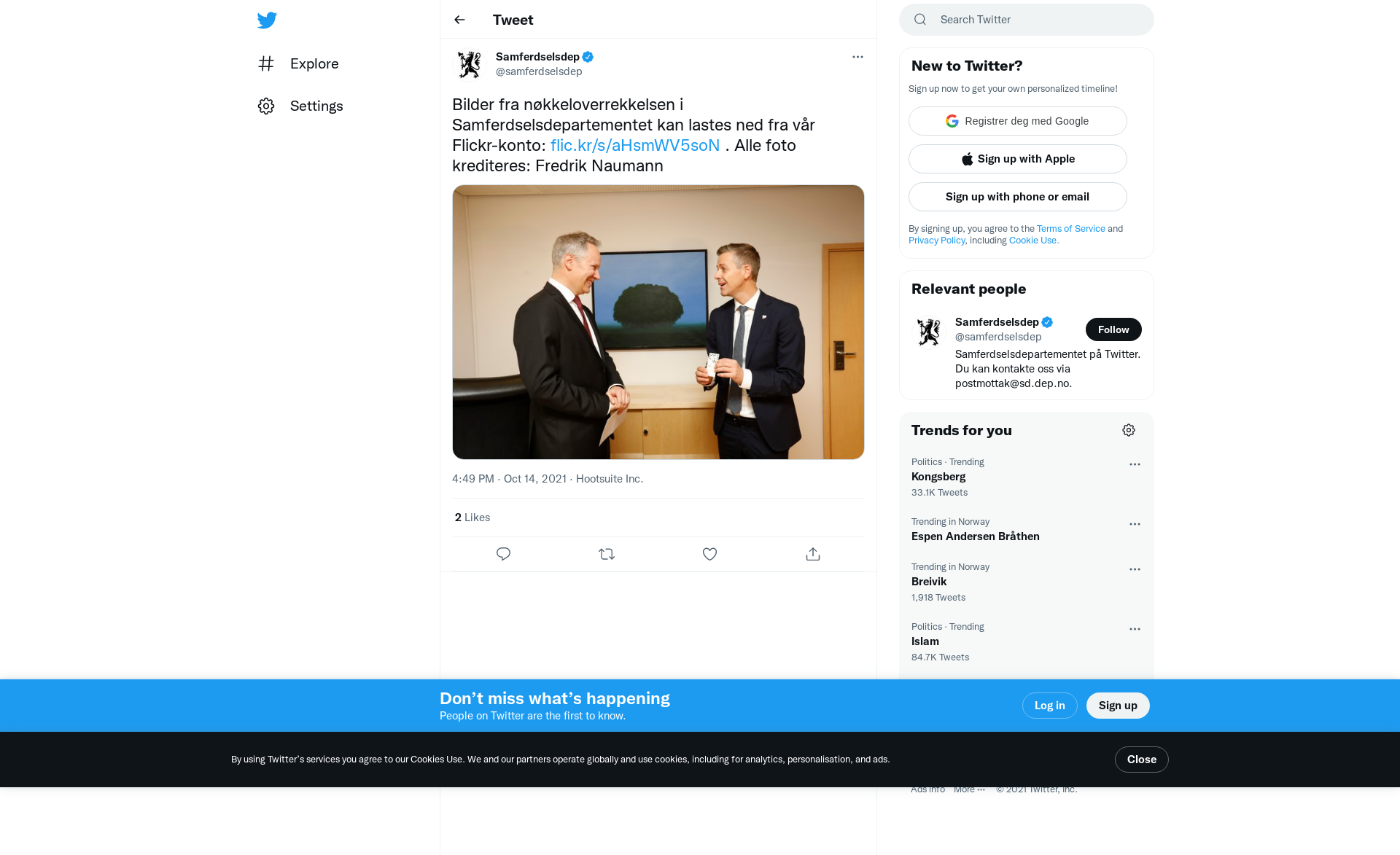 Bilder fra nøkkeloverrekkelsen i Samferdselsdepartementet kan lastes ned fra vår Flickr-konto: https://t.co/VdLNlvmRaP . Alle foto krediteres: Fredrik Naumann https://t.co/Se3GNoj8W4