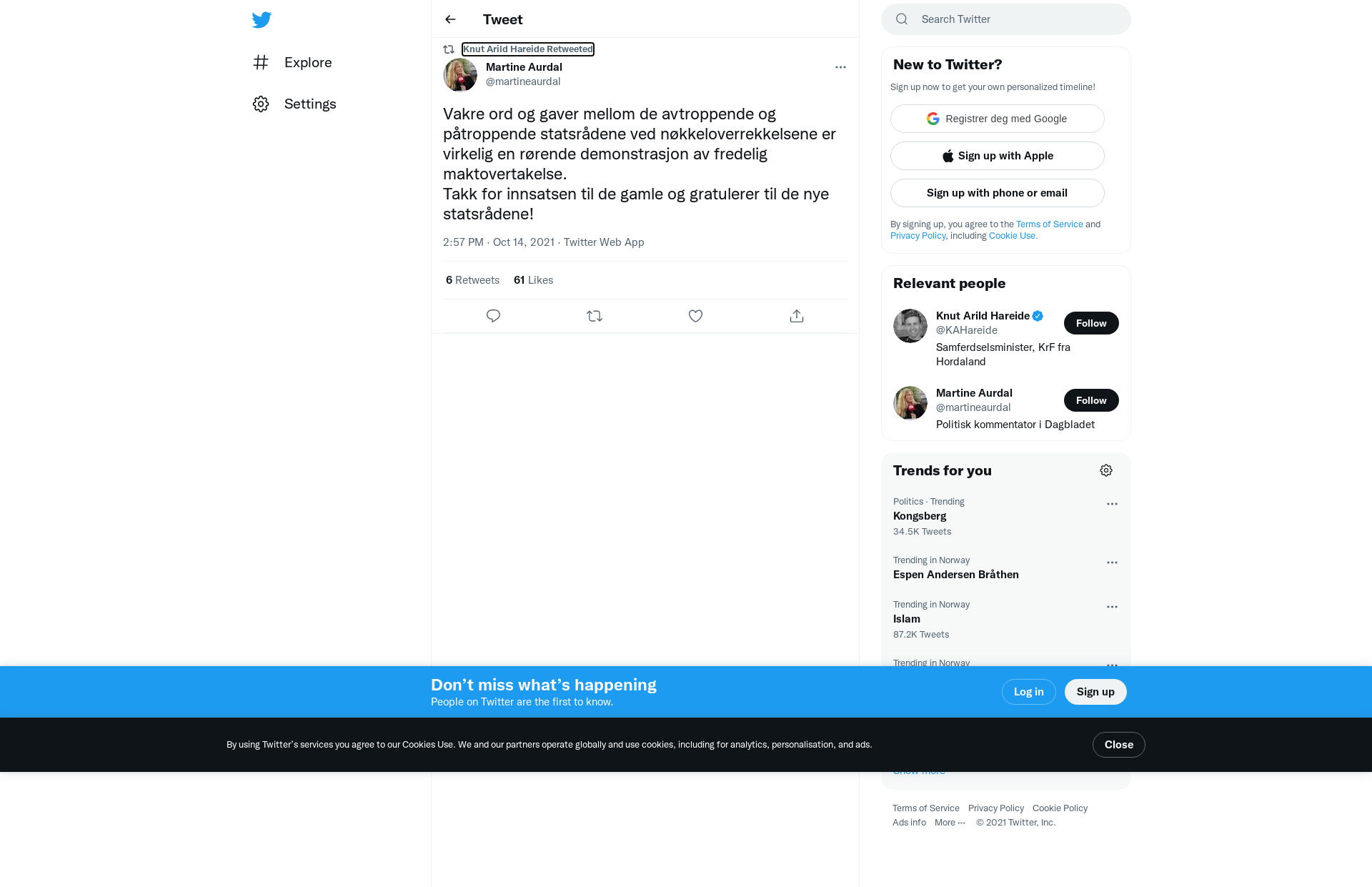 RT @martineaurdal: Vakre ord og gaver mellom de avtroppende og påtroppende statsrådene ved nøkkeloverrekkelsene er virkelig en rørende demonstrasjon av fredelig maktovertakelse.