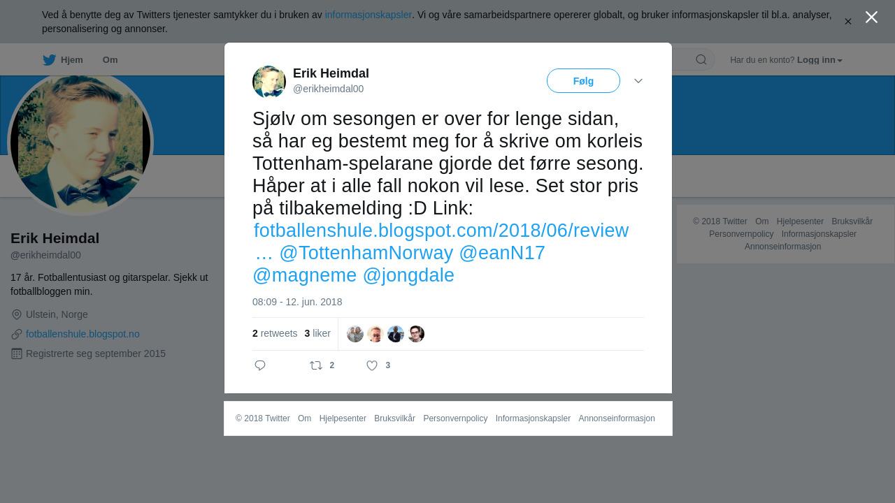RT @erikheimdal00: Sjølv om sesongen er over for lenge sidan, så har eg bestemt meg for å skrive om korleis Tottenham-spelarane gjorde… https://t.co/p6C2lkY7Tf