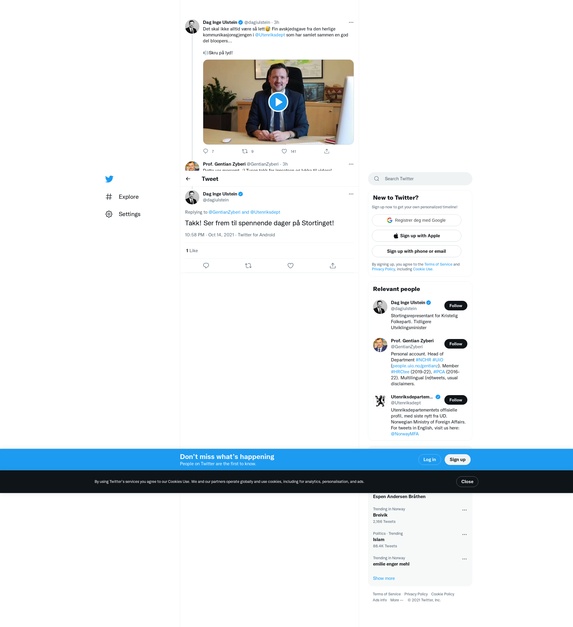 @GentianZyberi @Utenriksdept Takk! Ser frem til spennende dager på Stortinget!