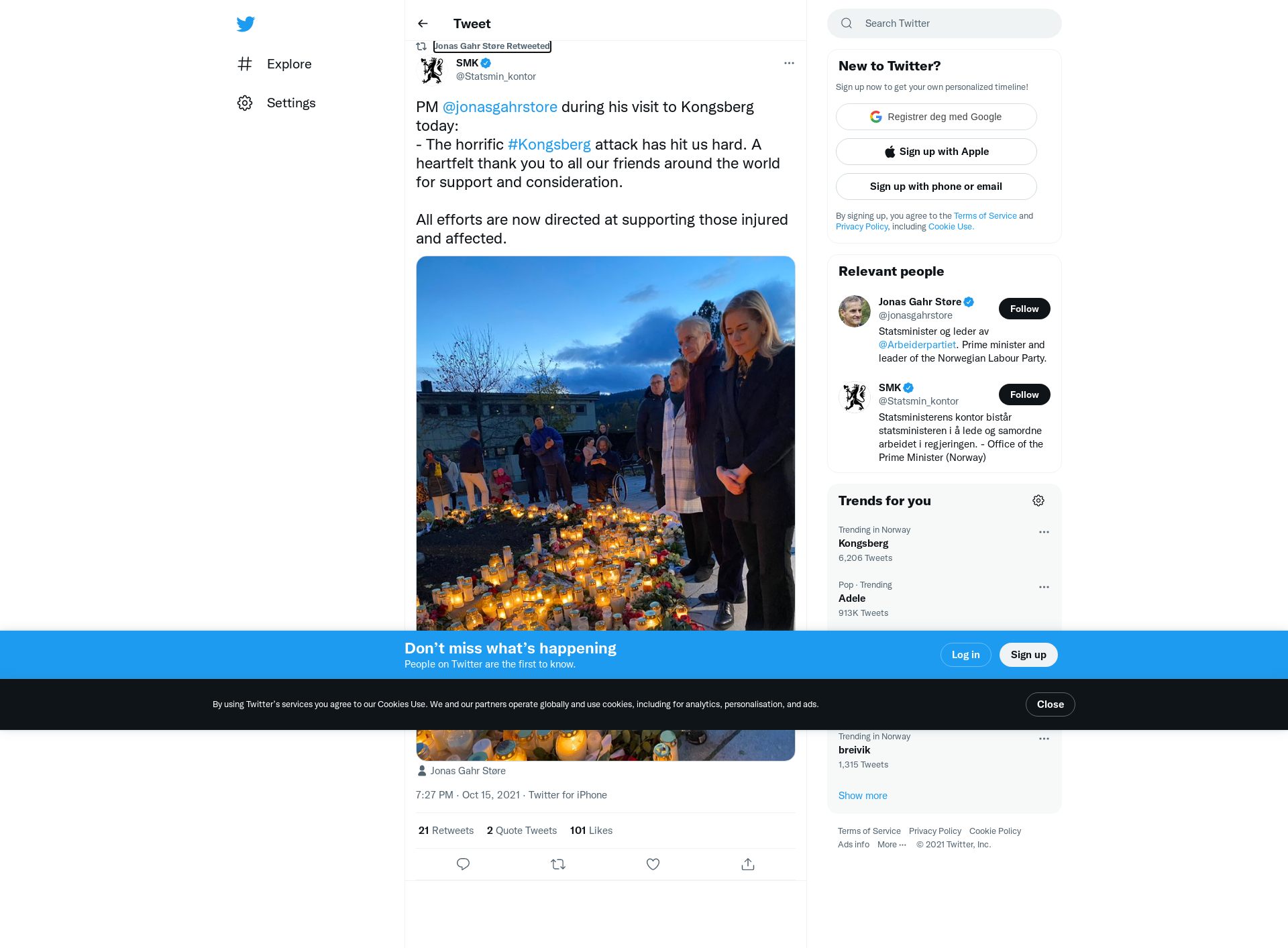 RT @Statsmin_kontor: PM @jonasgahrstore during his visit to Kongsberg today: - The horrific #Kongsberg attack has hit us hard. A heartfelt…