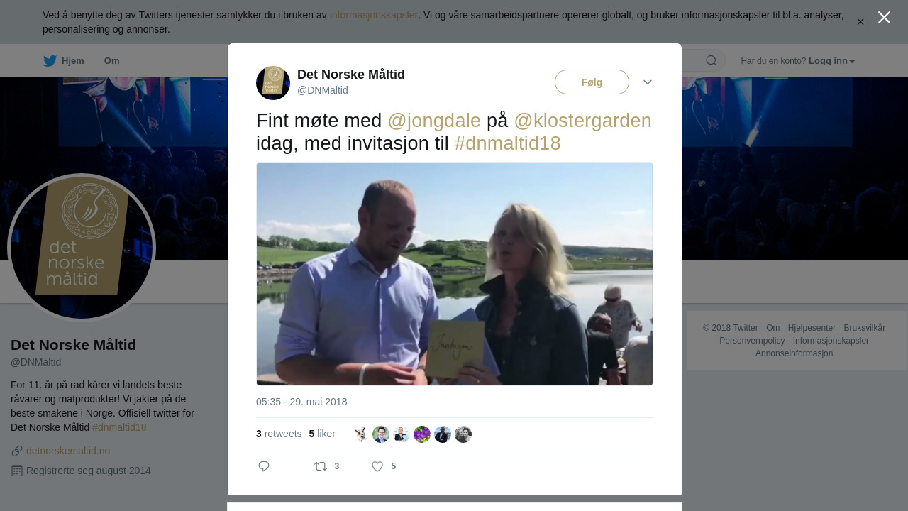 RT @DNMaltid: Fint møte med @jongdale på @klostergarden idag, med invitasjon til #dnmaltid18 https://t.co/In87I9nl25