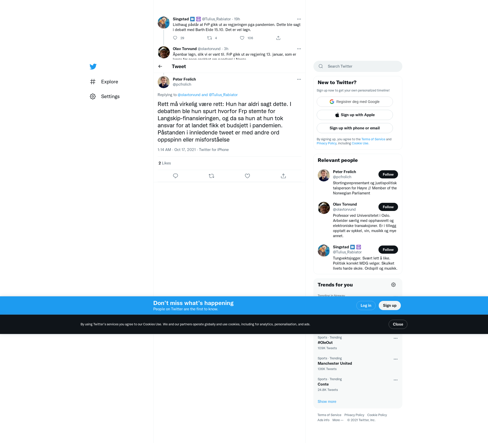 @olavtorvund @Tulius_Rabiator Rett må virkelig være rett: Hun har aldri sagt dette. I debatten ble hun spurt hvorfor Frp stemte for Langskip-finansieringen, og da sa hun at hun tok ansvar for at landet fikk et budsjett i pandemien. Påstanden i innledende tweet er med andre ord oppspinn eller misforståelse