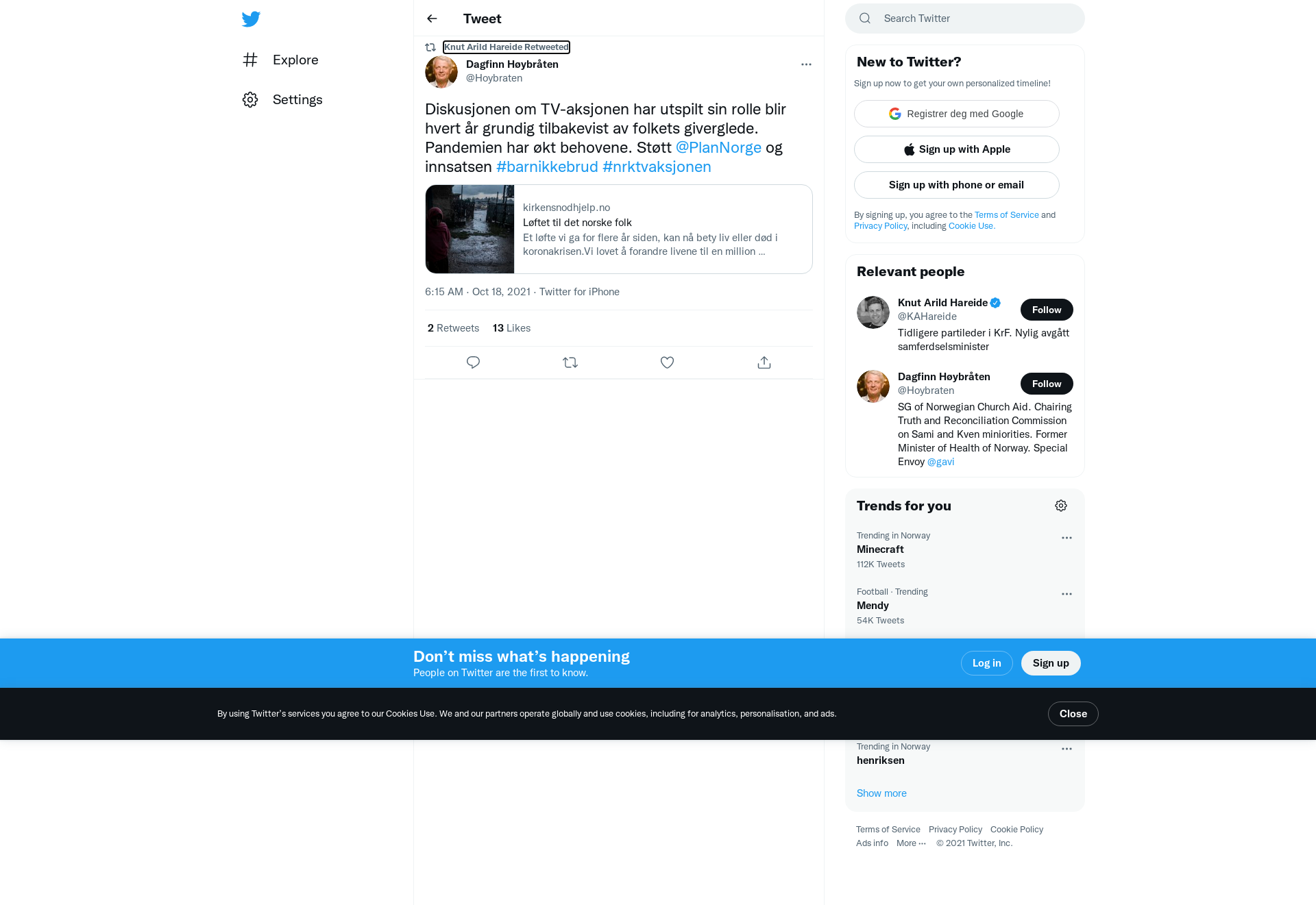 RT @Hoybraten: Diskusjonen om TV-aksjonen har utspilt sin rolle blir hvert år grundig tilbakevist av folkets giverglede. Pandemien har økt behovene. Støtt @PlanNorge og innsatsen #barnikkebrud #nrktvaksjonen https://t.co/fjRMOoorwG