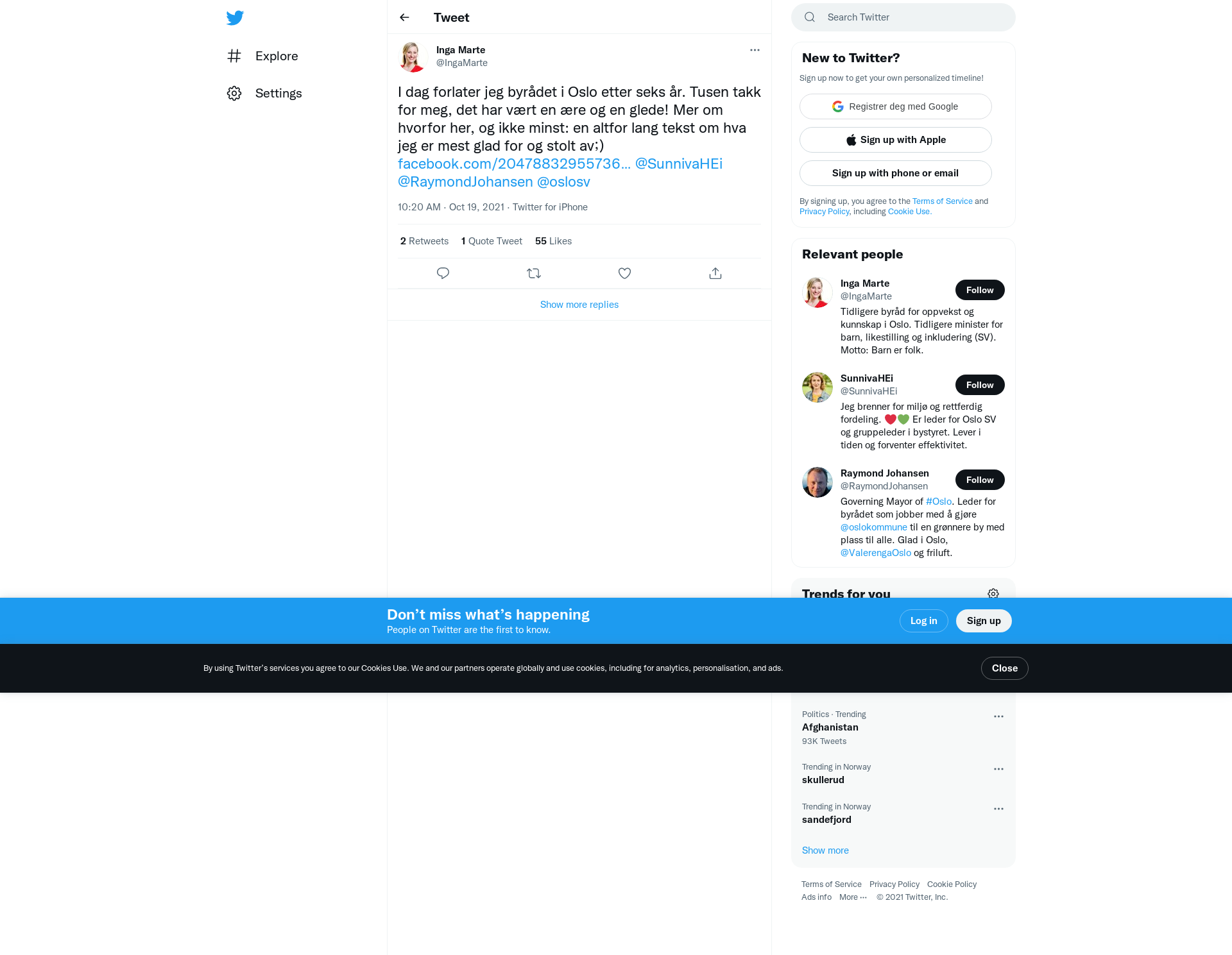 I dag forlater jeg byrådet i Oslo etter seks år. Tusen takk for meg, det har vært en ære og en glede! Mer om hvorfor her, og ikke minst: en altfor lang tekst om hva jeg er mest glad for og stolt av;) https://t.co/8dfCvpZEVU @SunnivaHEi @RaymondJohansen @oslosv