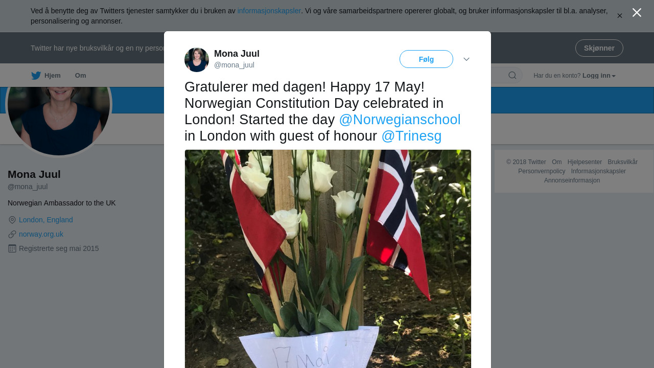 RT @mona_juul: Gratulerer med dagen! Happy 17 May! Norwegian Constitution Day celebrated in London! Started the day… https://t.co/MQt8EpkLX1