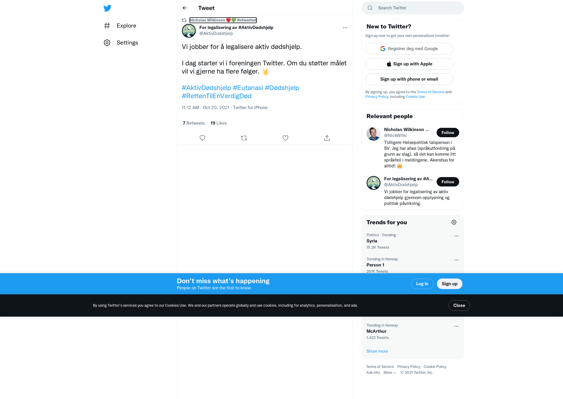 RT @AktivDodshjelp: Vi jobber for å legalisere aktiv dødshjelp. I dag starter vi i foreningen Twitter. Om du støtter målet vil vi gjerne h…