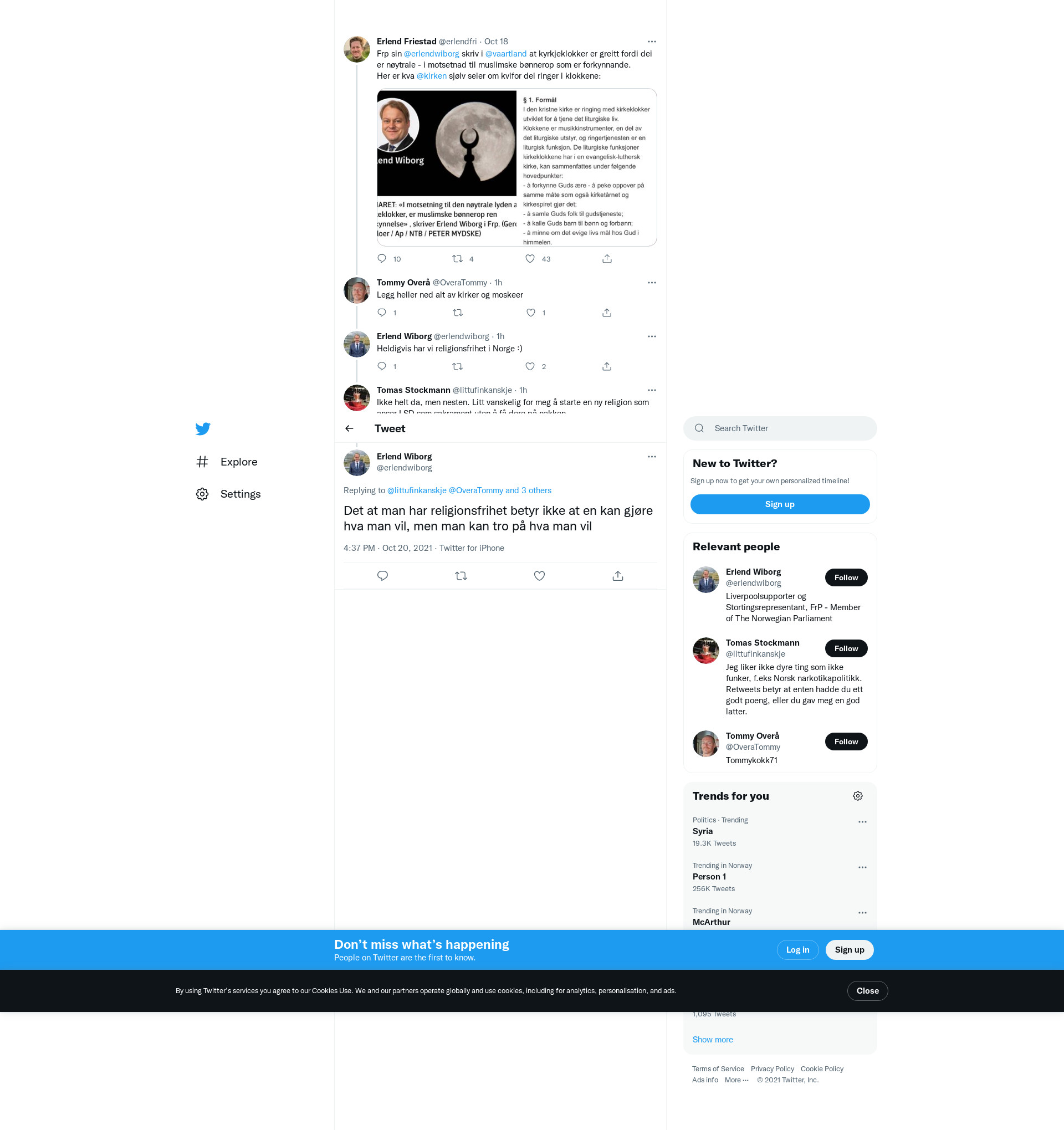 @littufinkanskje @OveraTommy @erlendfri @vaartland @kirken Det at man har religionsfrihet betyr ikke at en kan gjøre hva man vil, men man kan tro på hva man vil
