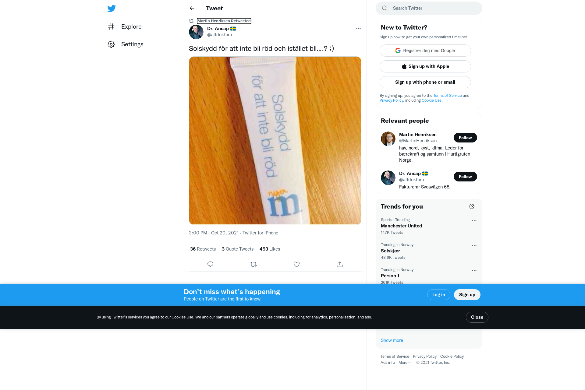 RT @altdoktorn: Solskydd för att inte bli röd och istället bli….? ;) https://t.co/hhsMnFrNOS