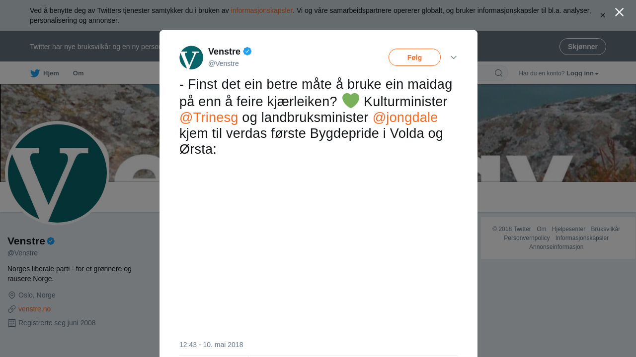 RT @Venstre: - Finst det ein betre måte å bruke ein maidag på enn å feire kjærleiken? 💚 Kulturminister @Trinesg og landbruksmini… https://t.co/auIMzLqLew