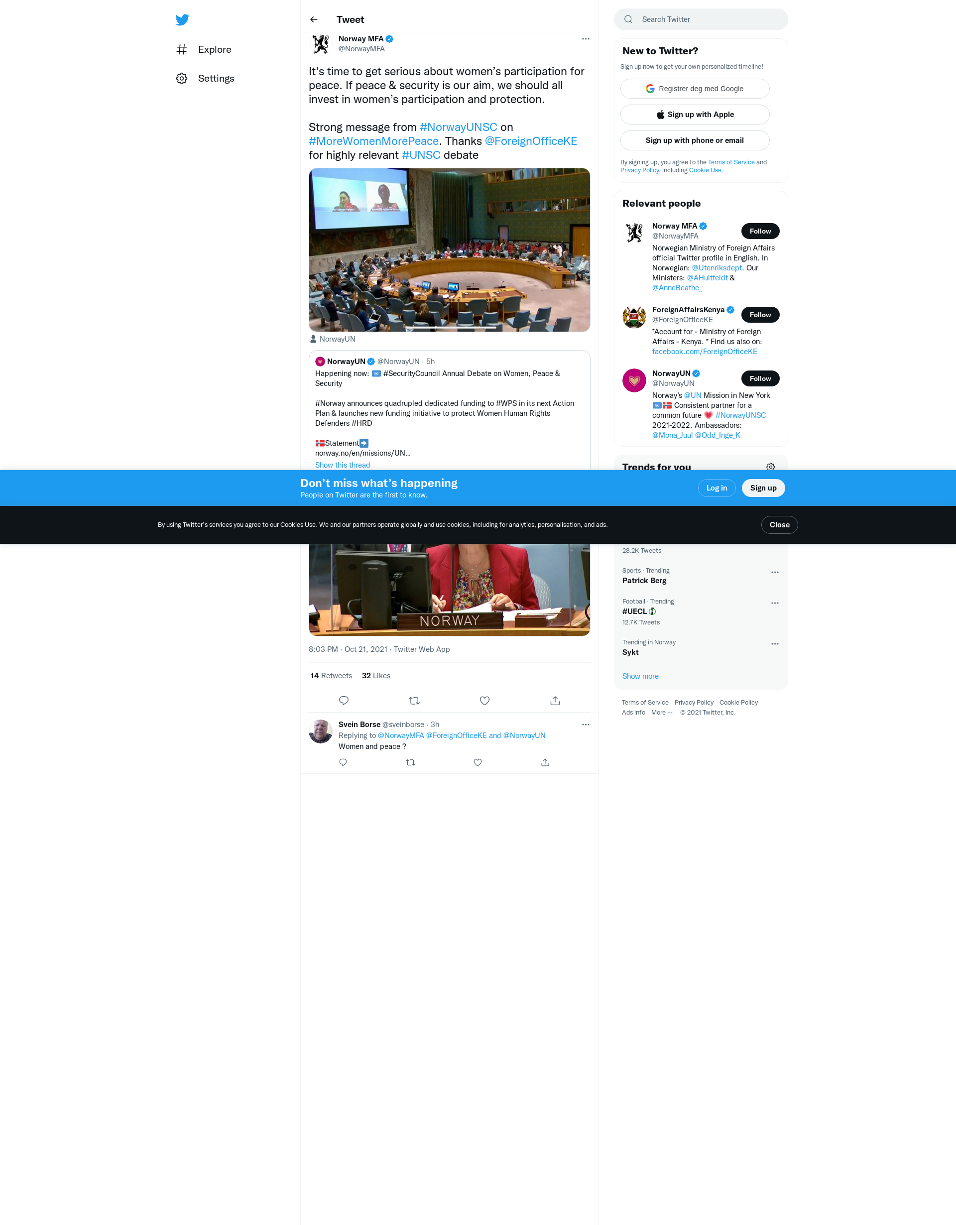 Statement by Permanent Representative Ambassador Mona Juul in the Security Council annual debate on Women, Peace and Security, 21 October 2021. I want to thank Kenya for today’s debate, and particularly for facilitating the participation of the broader membership. It is vital to the Council’s work that we hear from all voices. In this respect allow me also to thank Secretary-General Guterres, Executive Director Sima Bahous and Special Envoy Bineta Diop for their briefings. A special thanks also to Celia