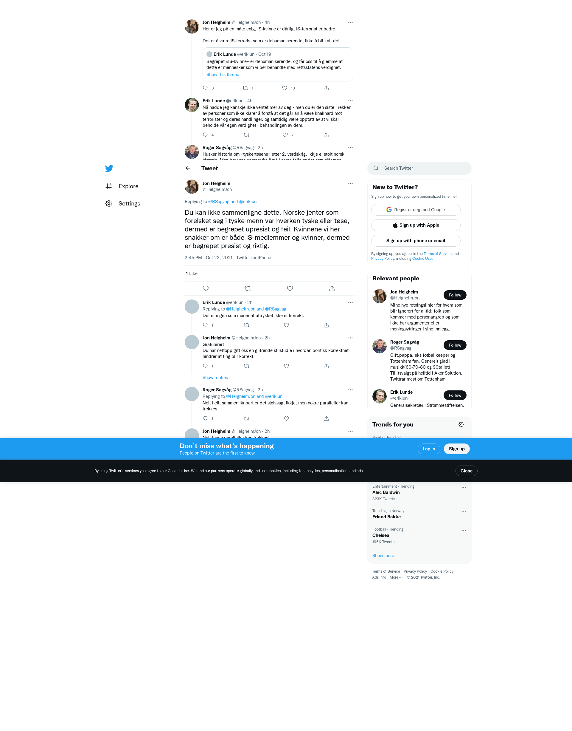 @RSagvag @eriklun Du kan ikke sammenligne dette. Norske jenter som forelsket seg i tyske menn var hverken tyske eller tøse, dermed er begrepet upresist og feil. Kvinnene vi her snakker om er både IS-medlemmer og kvinner, dermed er begrepet presist og riktig.