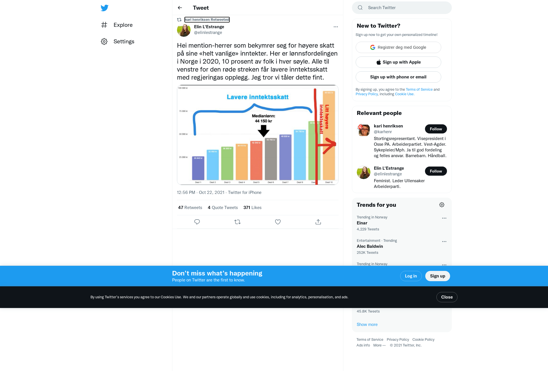 RT @elinlestrange: Hei mention-herrer som bekymrer seg for høyere skatt på sine «helt vanlige» inntekter. Her er lønnsfordelingen i Norge i 2020, 10 prosent av folk i hver søyle. Alle til venstre for den røde streken får lavere inntektsskatt med regjeringas opplegg. Jeg tror vi tåler dette fint. https://t.co/1ODuDiyAtp