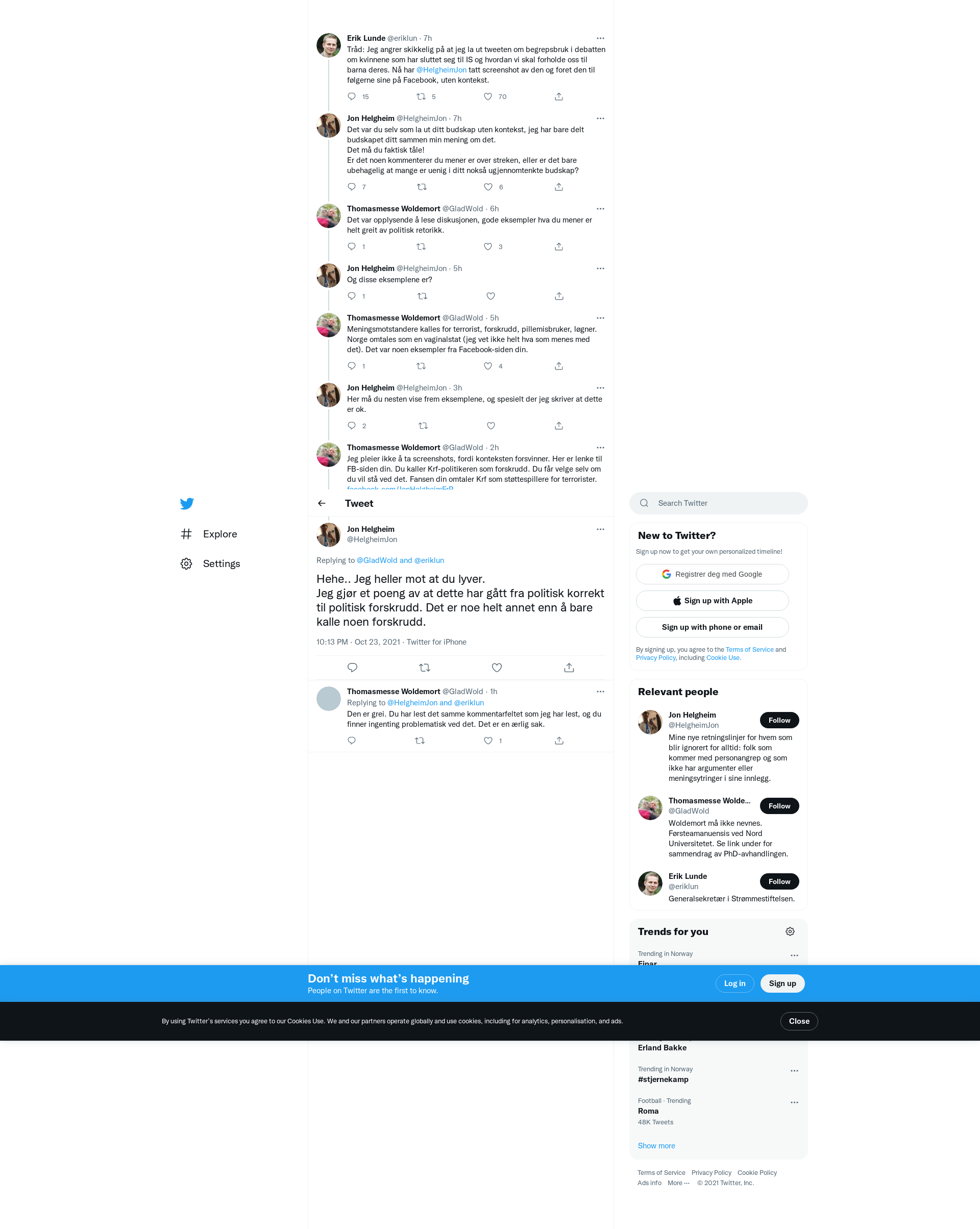 @GladWold @eriklun Hehe.. Jeg heller mot at du lyver. Jeg gjør et poeng av at dette har gått fra politisk korrekt til politisk forskrudd. Det er noe helt annet enn å bare kalle noen forskrudd.