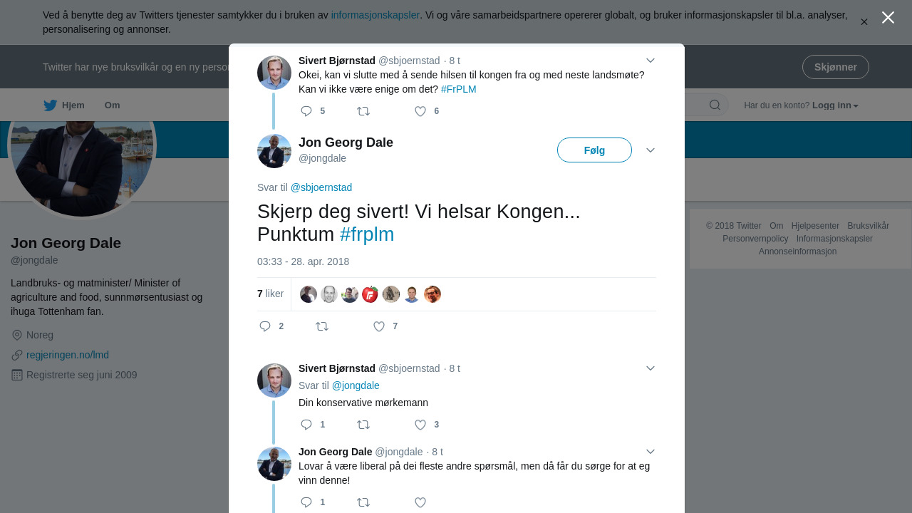 @sbjoernstad Skjerp deg sivert! Vi helsar Kongen... Punktum #frplm