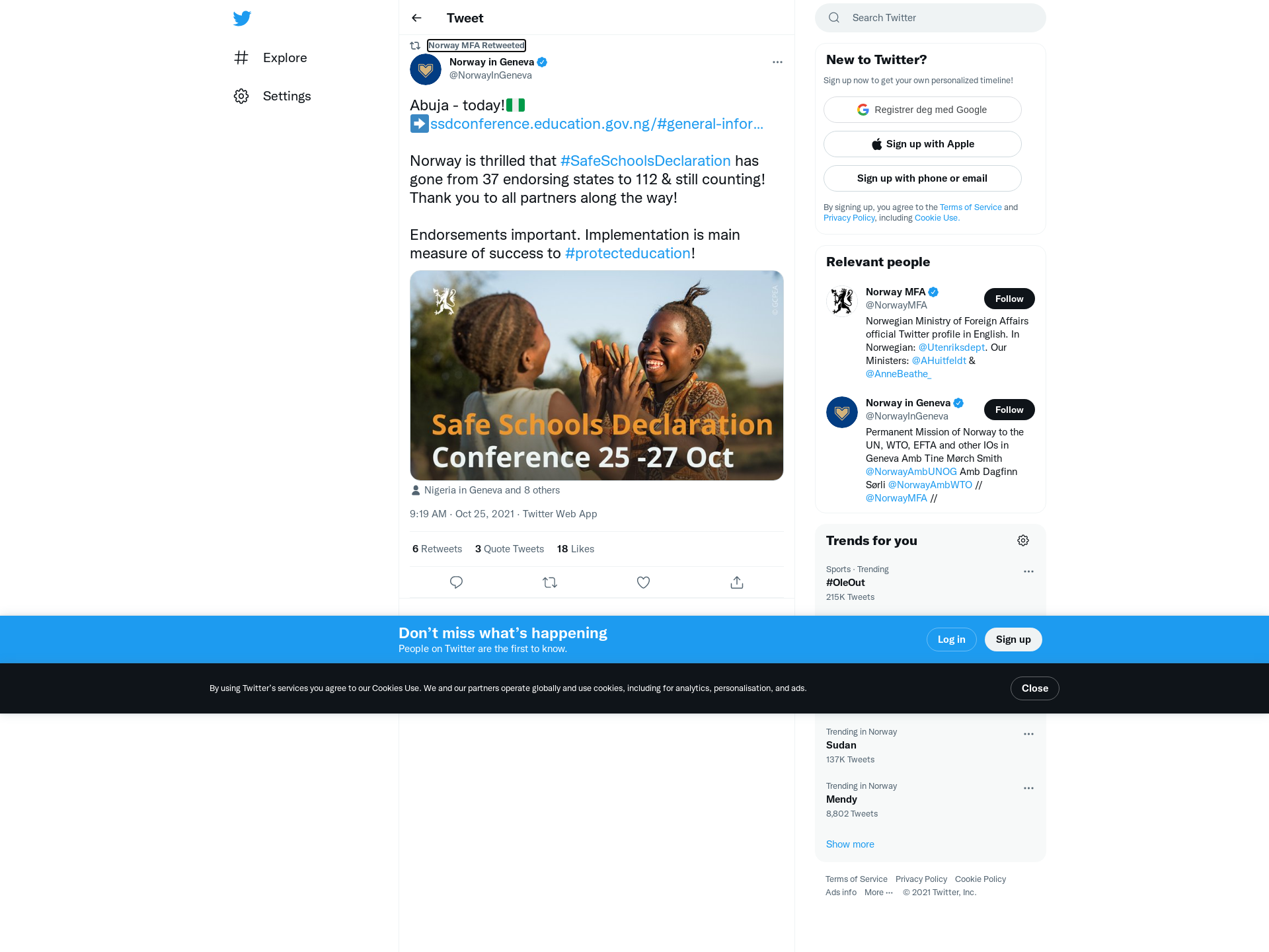 RT @NorwayInGeneva: Abuja - today!🇳🇬 ➡️https://t.co/P8td6EImFz Norway is thrilled that #SafeSchoolsDeclaration has gone from 37 endorsing…