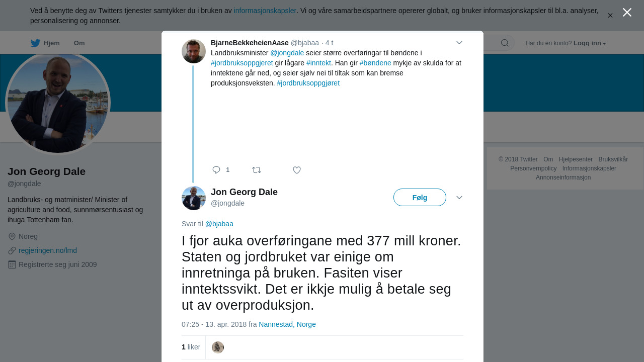 @bjabaa I fjor auka overføringane med 377 mill kroner. Staten og jordbruket var einige om innretninga på bruken. Fasiten viser inntektssvikt. Det er ikkje mulig å betale seg ut av overproduksjon.