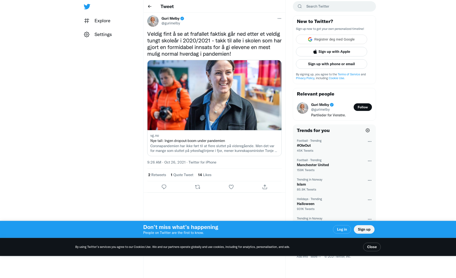 Veldig fint å se at frafallet faktisk går ned etter et veldig tungt skoleår i 2020/2021 - takk til alle i skolen som har gjort en formidabel innsats for å gi elevene en mest mulig normal hverdag i pandemien! https://t.co/MPs1gzrv2U