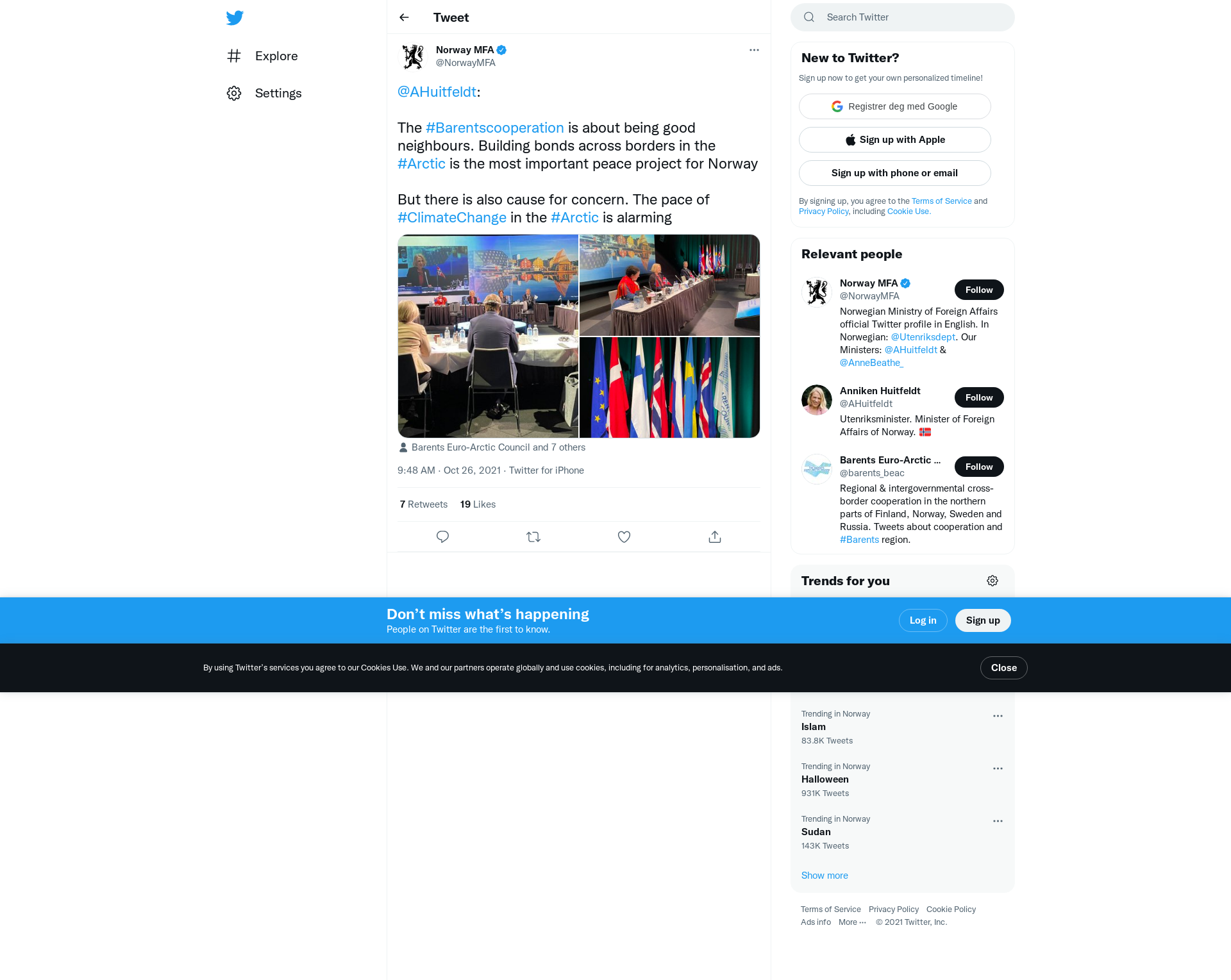 The #Barentscooperation is about being good neighbours. Building bonds across borders in the #Arctic is the most important peace project for Norway