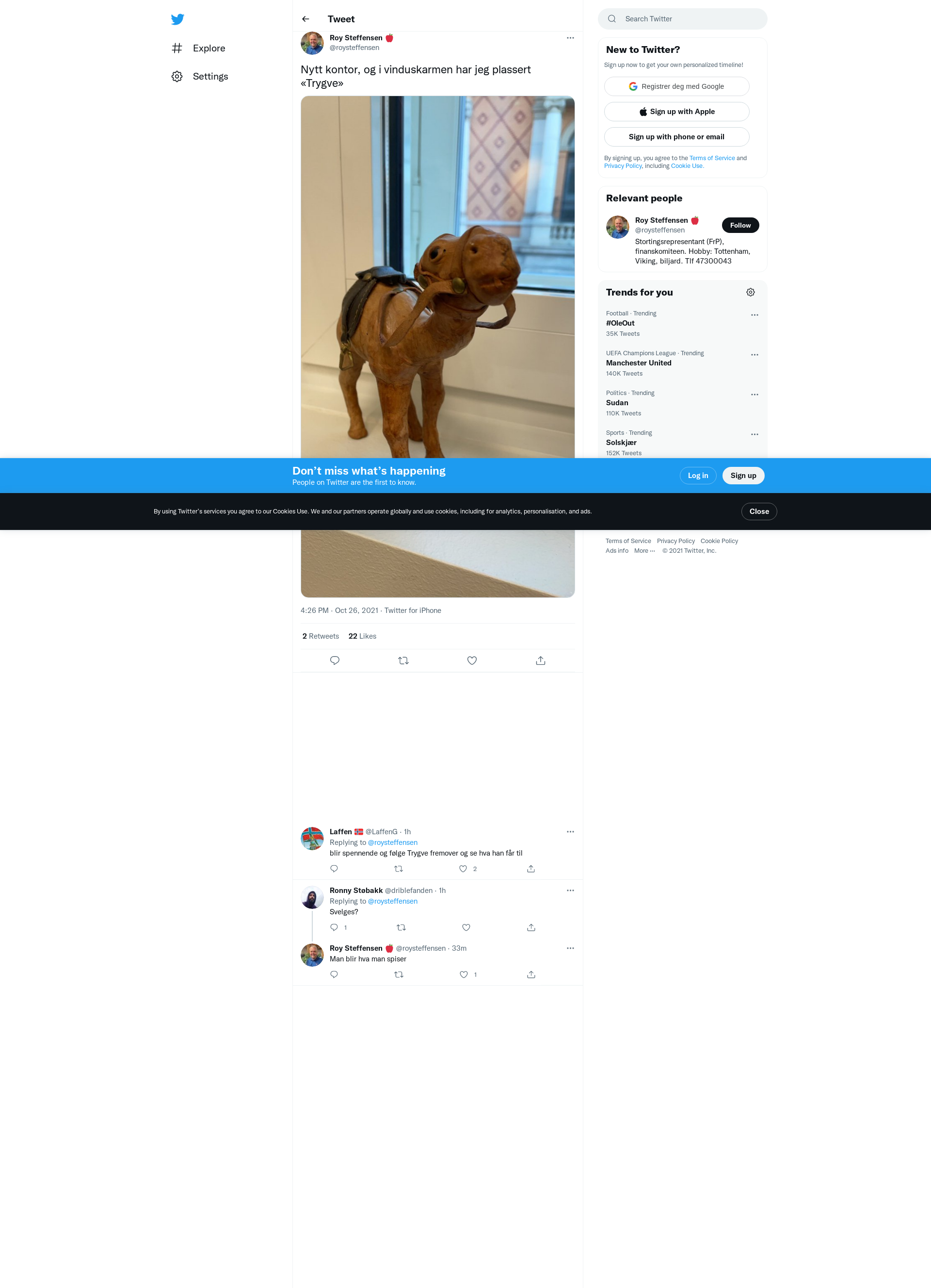 Nytt kontor, og i vinduskarmen har jeg plassert «Trygve» https://t.co/MjCUlSE1OJ