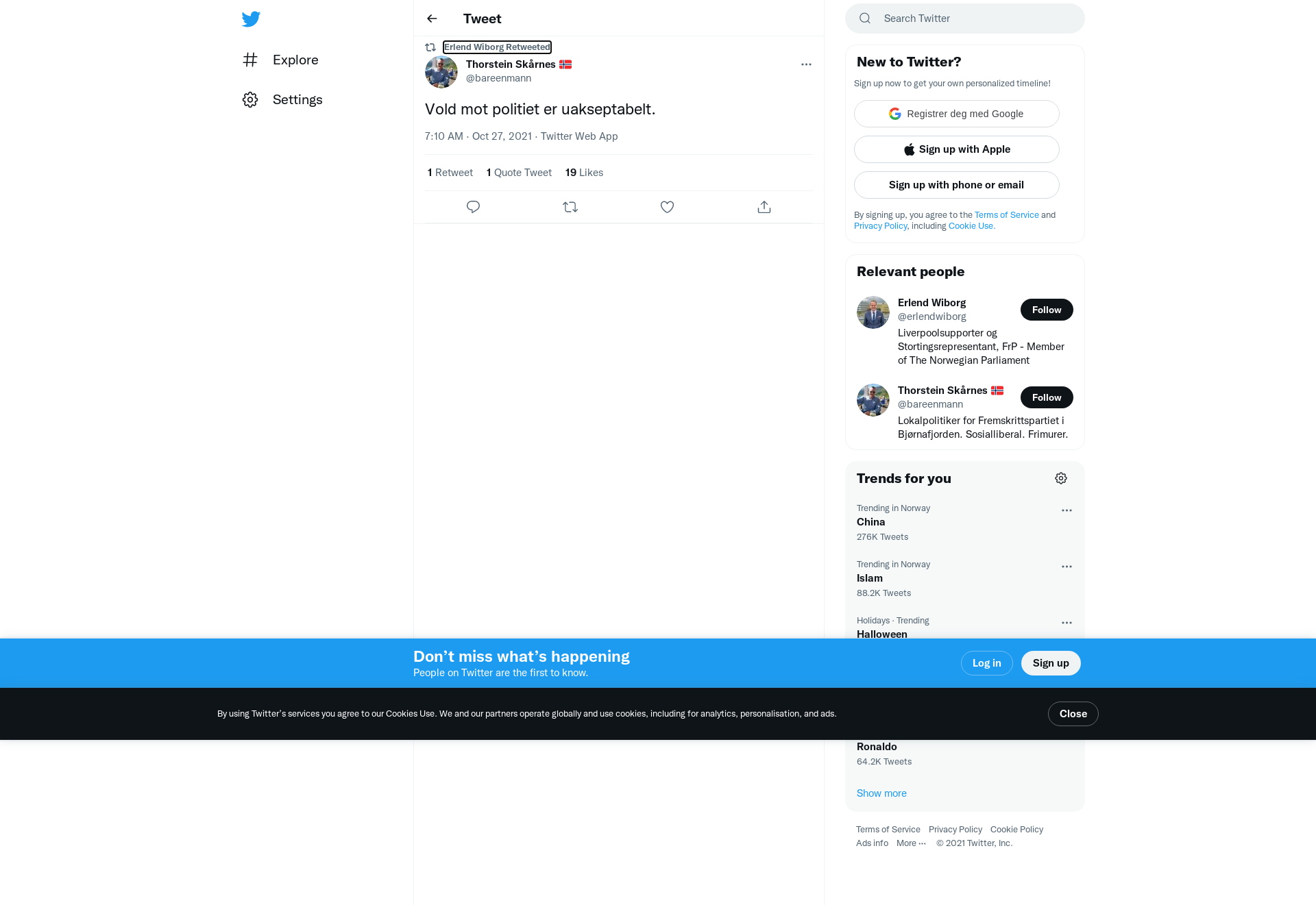 RT @bareenmann: Vold mot politiet er uakseptabelt.