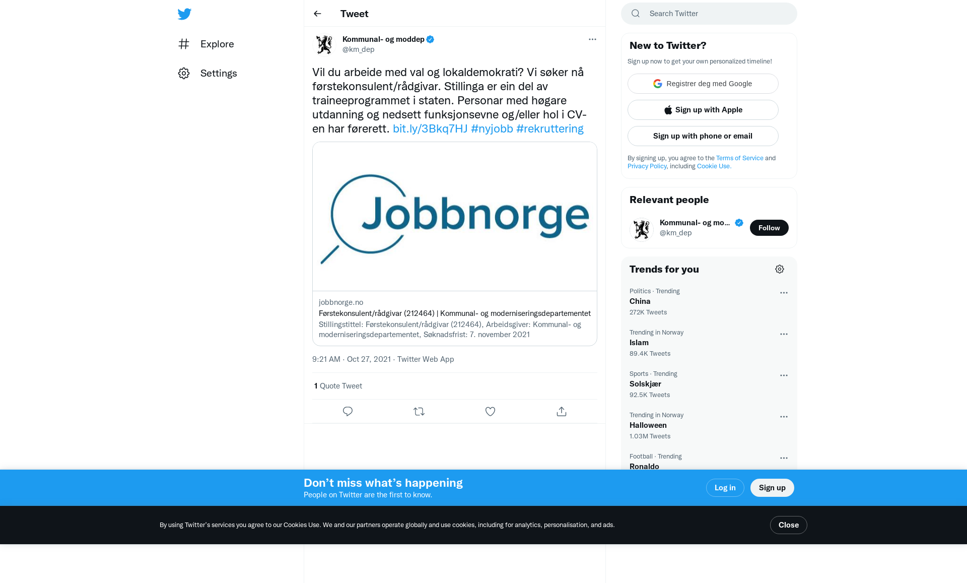 Vil du arbeide med val og lokaldemokrati? Vi søker nå førstekonsulent/rådgivar. Stillinga er ein del av traineeprogrammet i staten. Personar med høgare utdanning og nedsett funksjonsevne og/eller hol i CV-en har førerett. https://t.co/XGKGnaSpOi #nyjobb #rekruttering