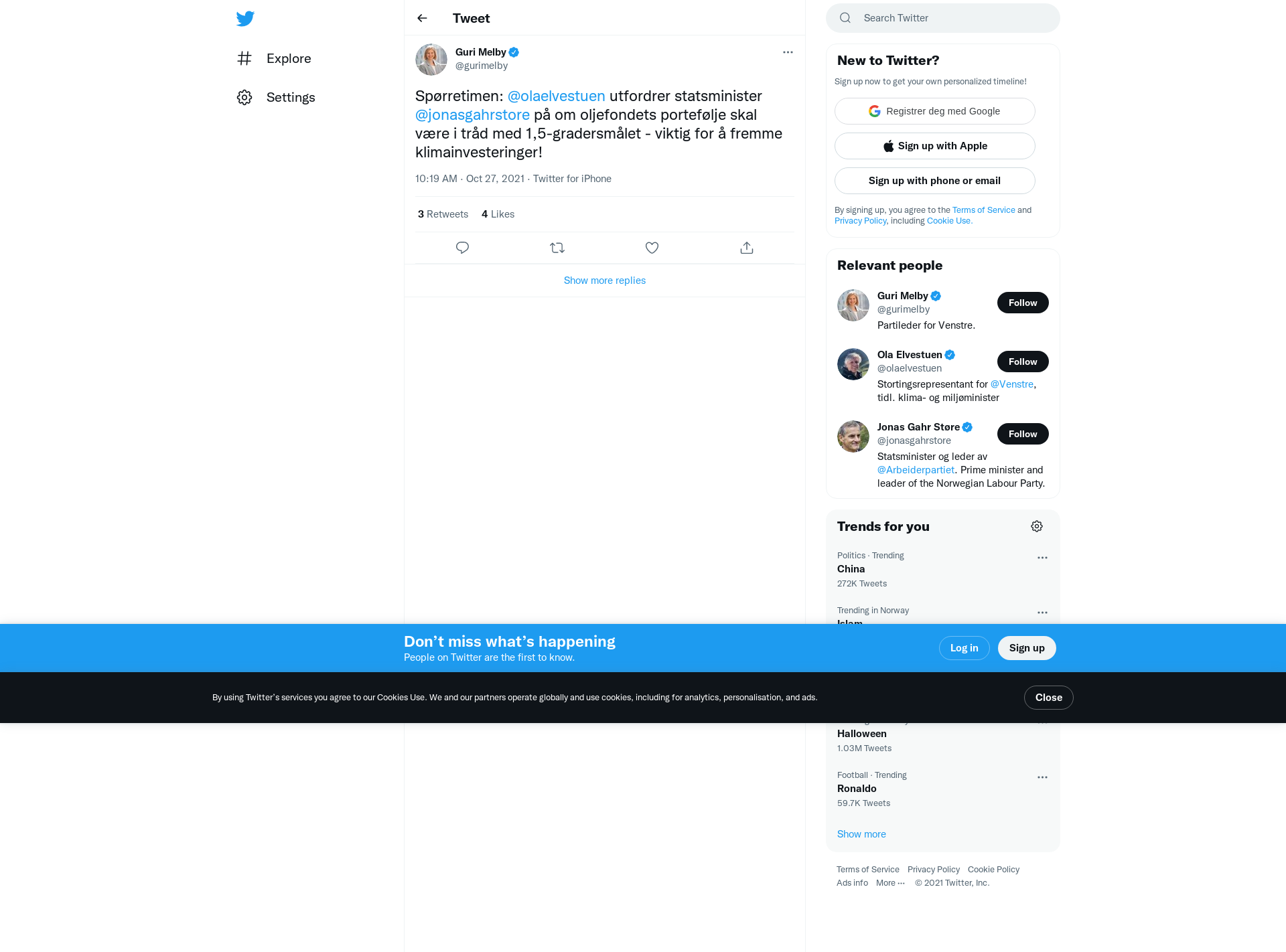Spørretimen: @olaelvestuen utfordrer statsminister @jonasgahrstore på om oljefondets portefølje skal være i tråd med 1,5-gradersmålet - viktig for å fremme klimainvesteringer!