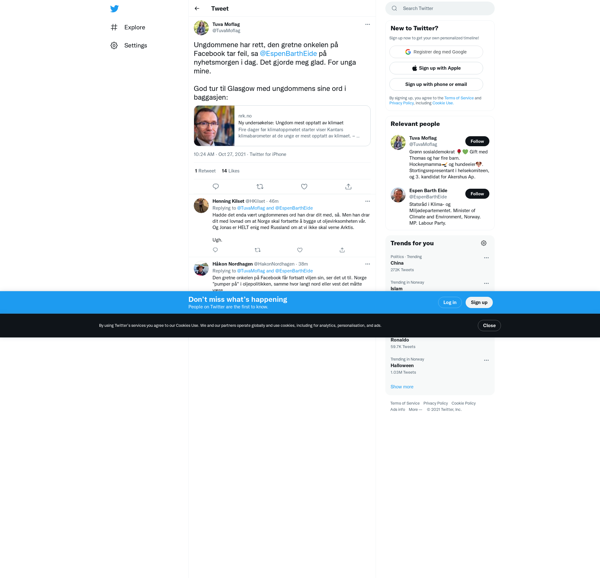Fire dager før klimatoppmøtet starter viser Kantars klimabarometer at de unge er mest opptatt av klimaet. – Deres gretne onkel på Facebook, som mener at dette er noe tull som noen har funnet på, tar feil, sier Espen Barth Eide til NRK.
